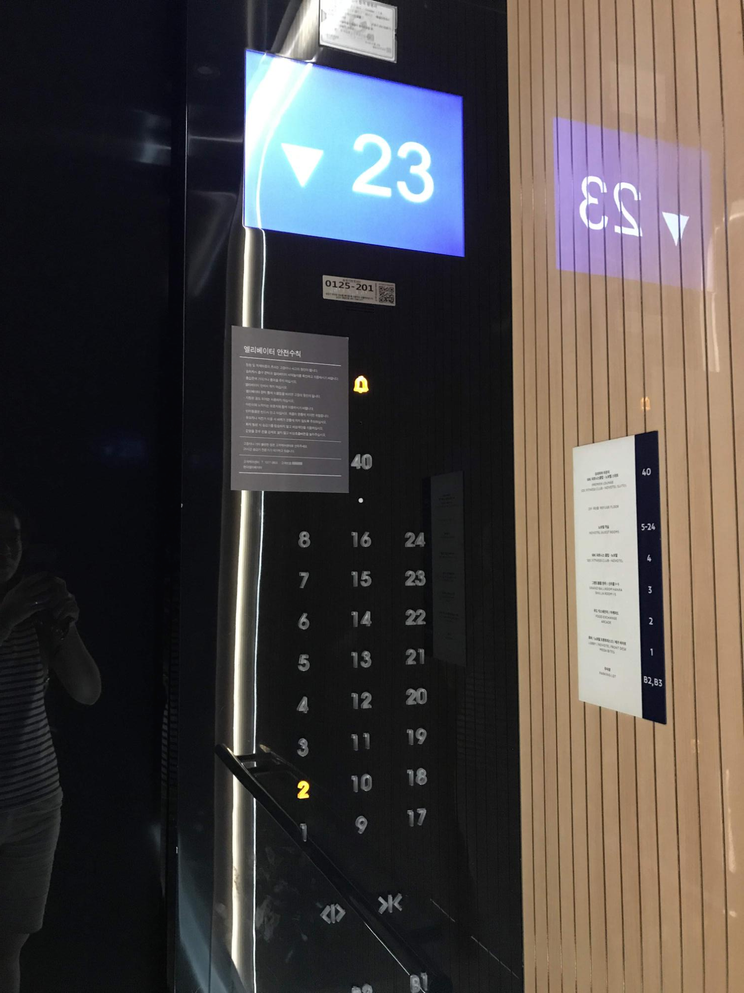 노보텔 프론트 데스크는 1층에 있고 노보텔 엘리베이터를 타야 객실로 갈 수 있다.