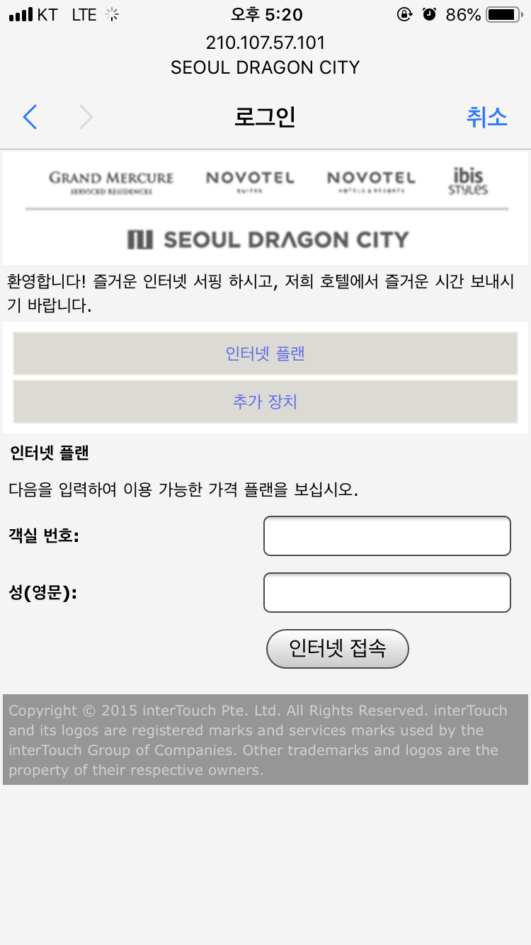 객실 와이파이 접속