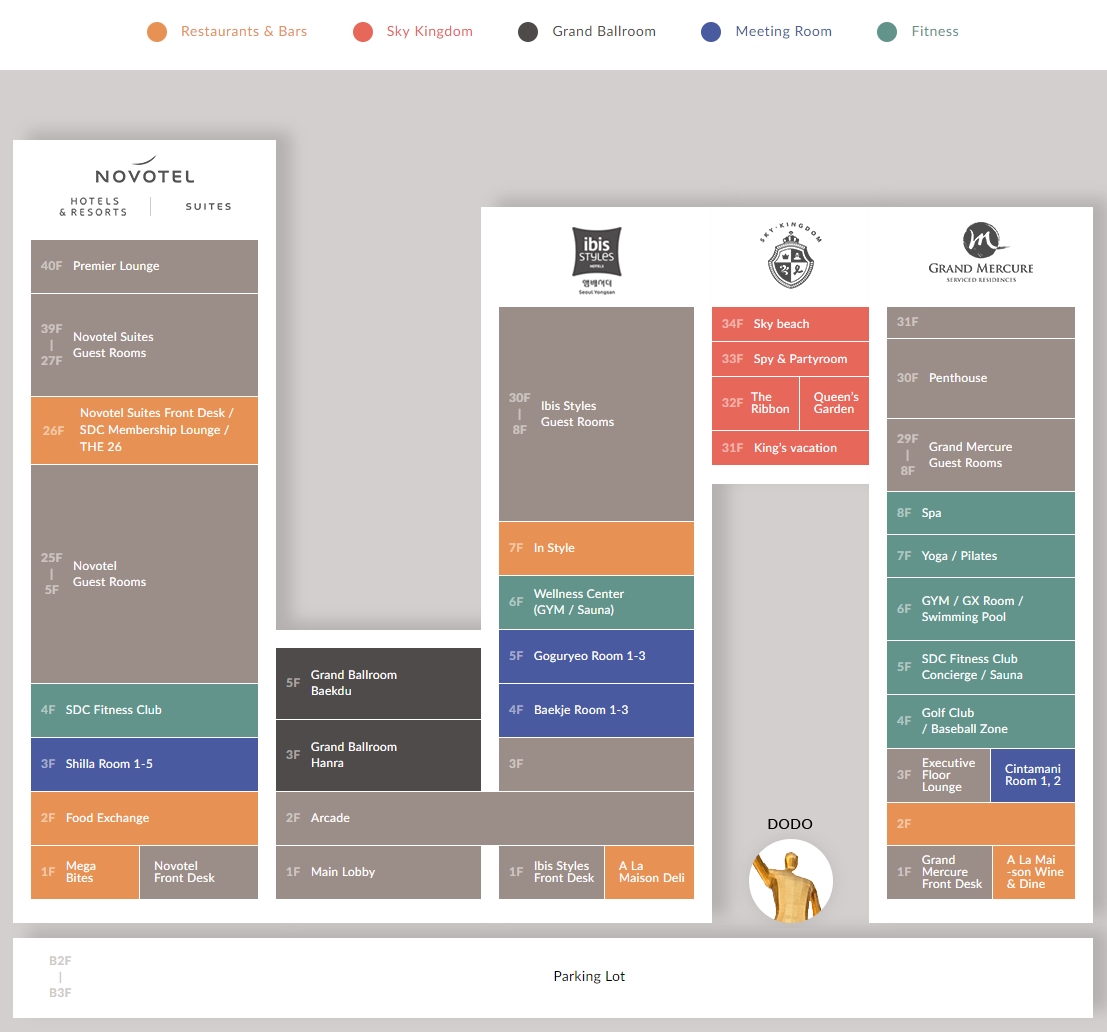 하지만 노보텔과 노보텔 스위트의 경우 프론트 데스크가 있는 층도 다르고 이용하는 엘리베이터도 다르다.