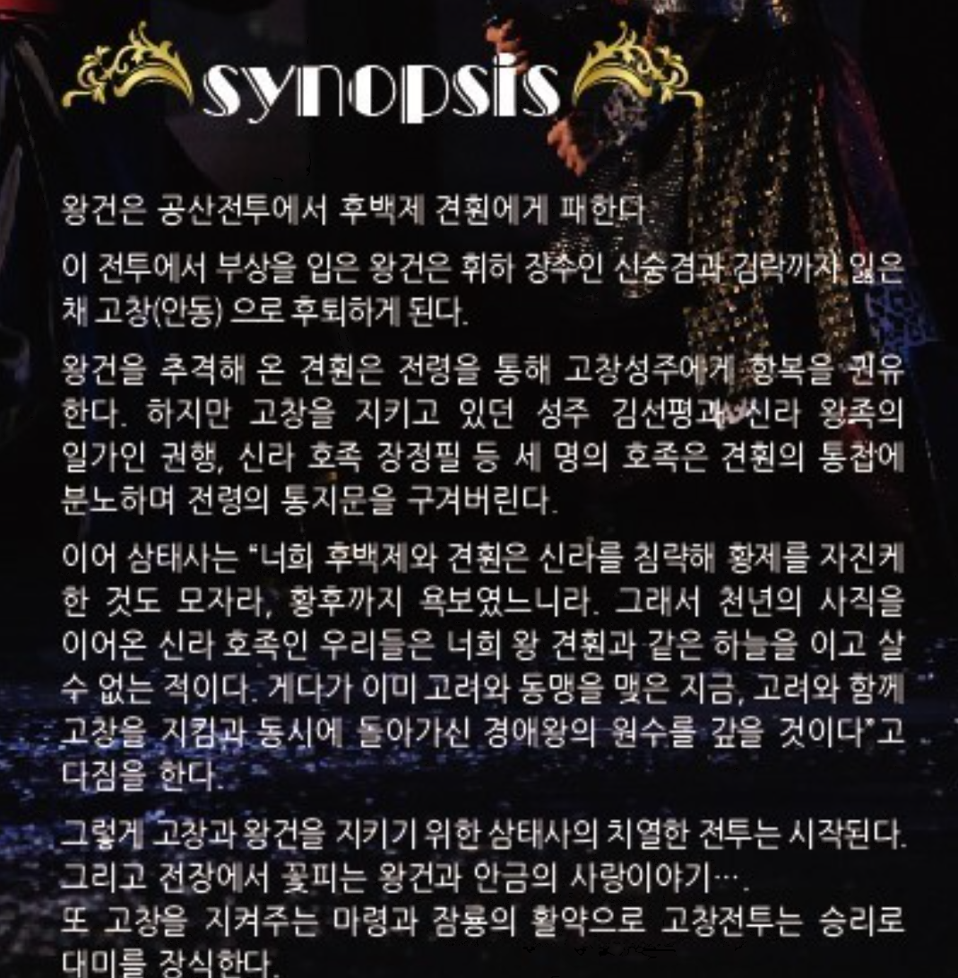 - 공연명 : 뮤지컬 왕의나라 Ⅱ 삼태사(三太師)