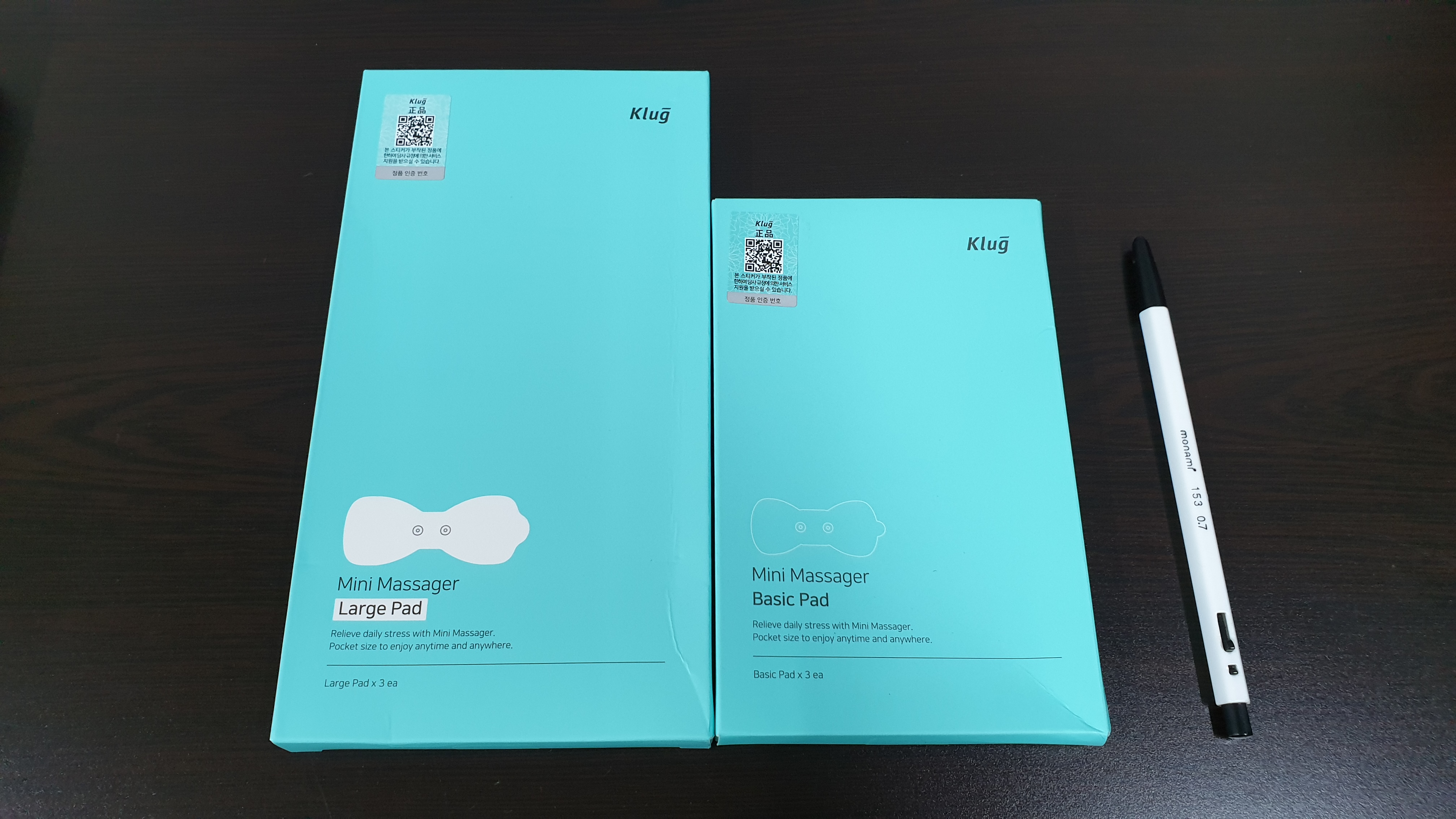 큰 패드는 면적이 넓은 허벅지나 등에 붙이기 좋고, 작은 사이즈의 기본(베이직) 패드는 면적이 좁은 손목이나 발목, 발바닥 등에 붙이기 좋다.