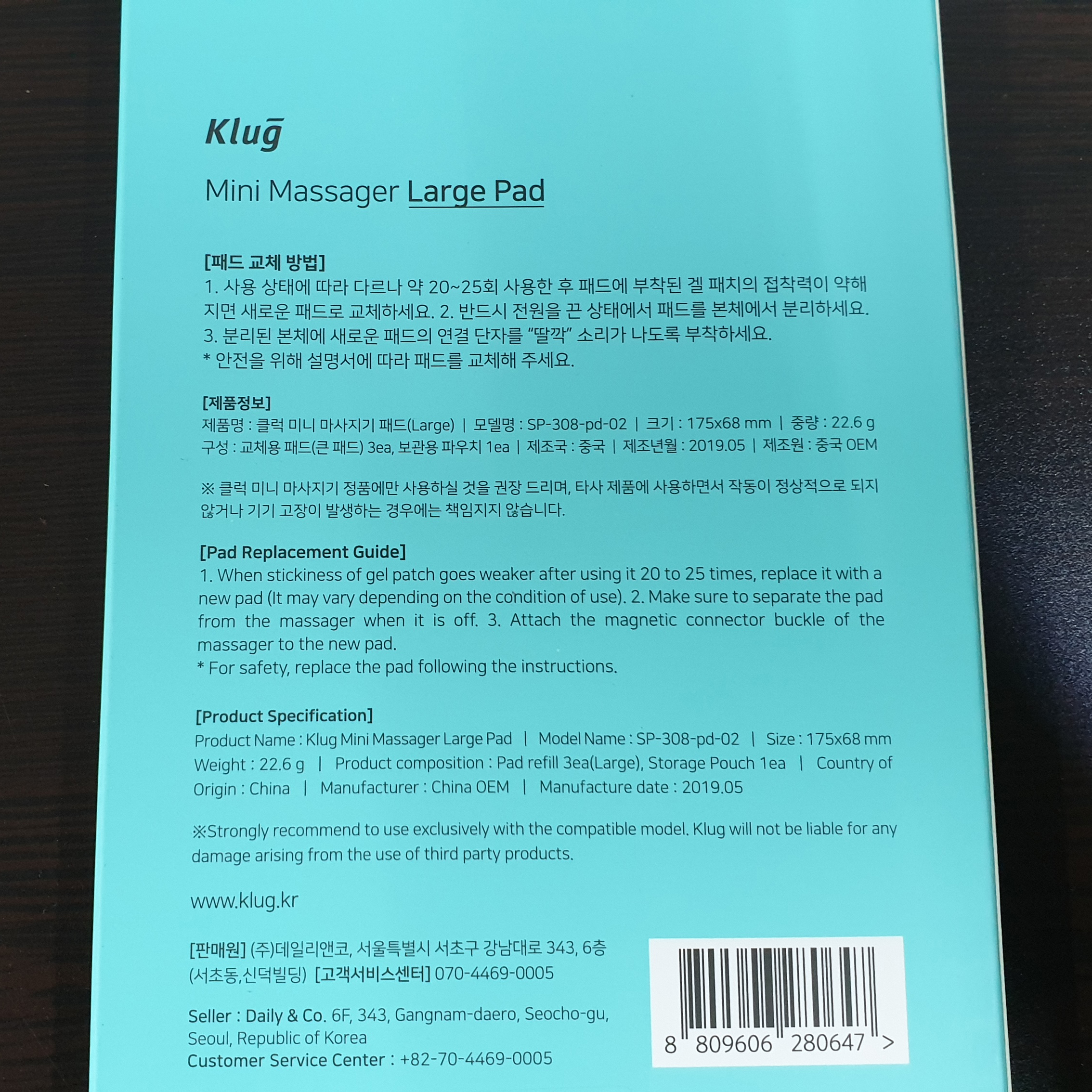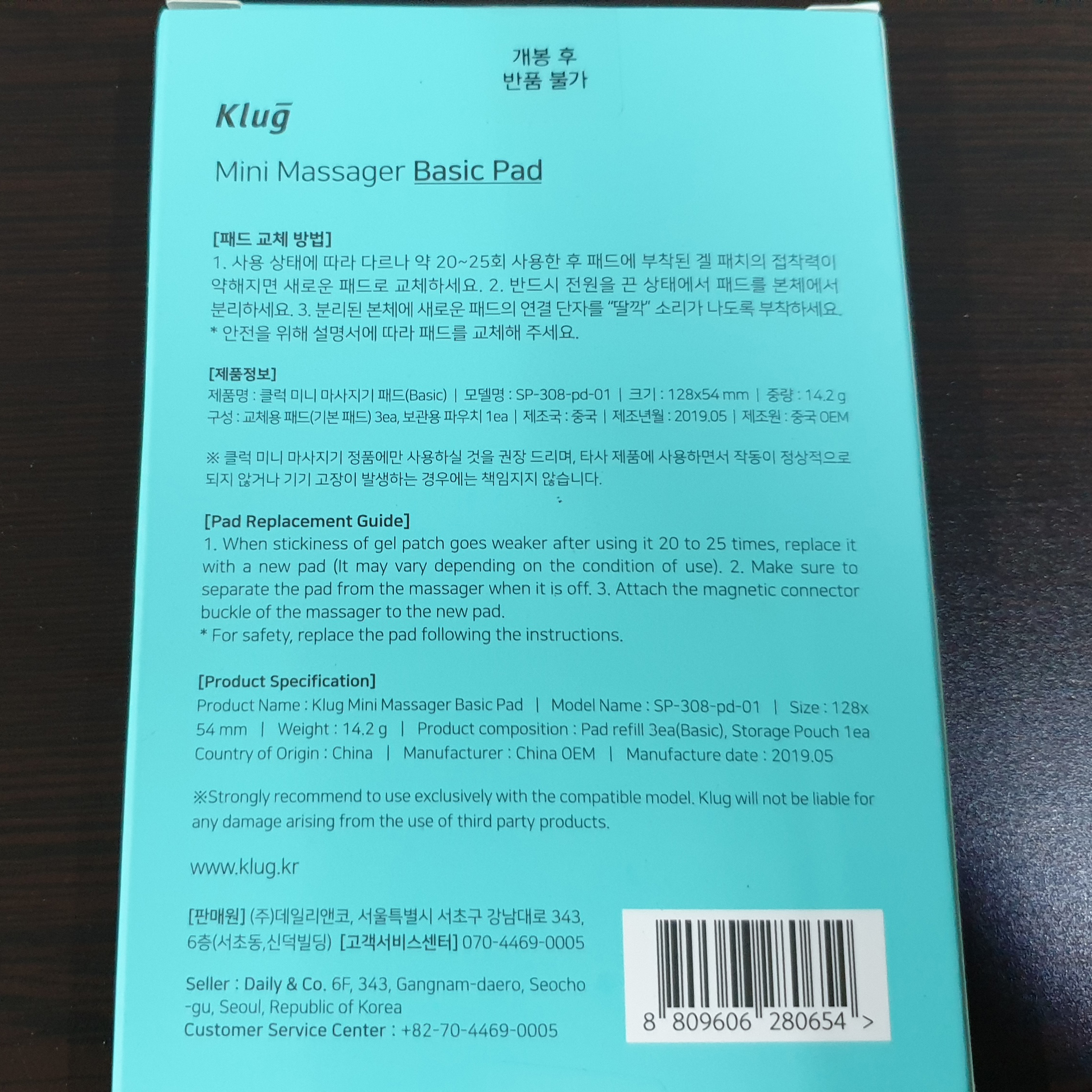 패드에 하이드로겔이 부착되어 있어서 피부에 밀착되는데 사용횟수가 늘어날수록 먼지가 붙거나 피부의 기름기가 묻어 밀착력이 떨어지게 된다. 그럼 물티슈로 살살 닦아주면 밀착력이 어느 정도 회복되고 몇 번 더 사용한 후 패드를 교체해 주어야 한다.