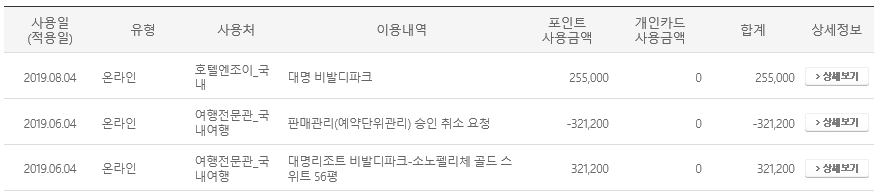 2019년 근로자휴가지원금 40만원 사용내역