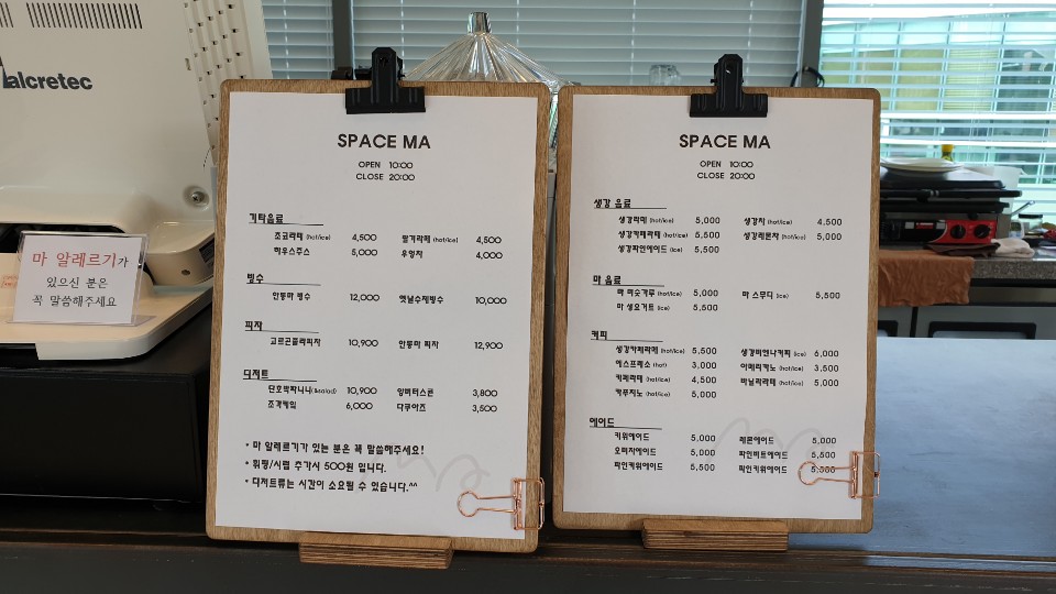 일반 카페처럼 커피도 있지만 안동시 특산품인 안동마와 안동생강을 원료로 개발한 메뉴가 판매되는 카페마.