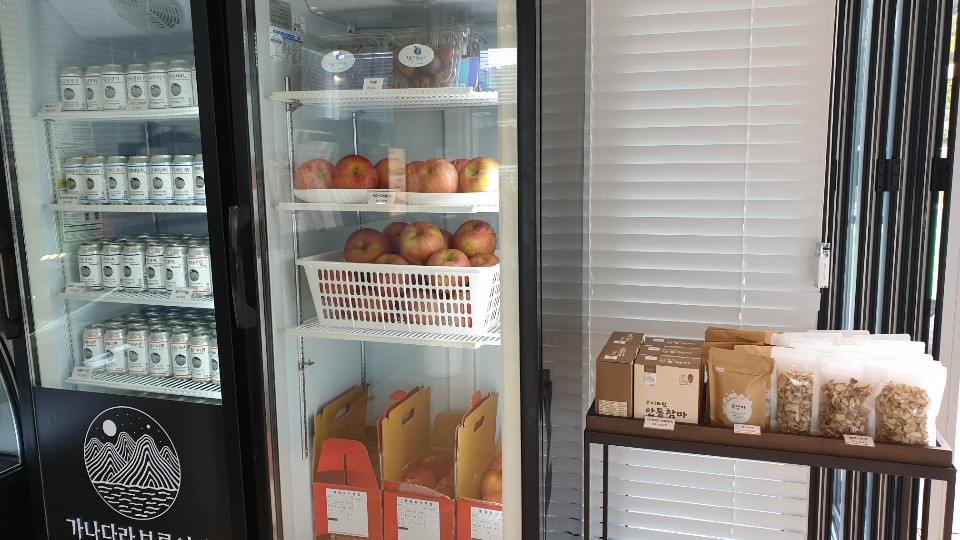 안동의 특산품인 안동마를 재료로 한 마 요거트, 마 미숫가루, 마 스무디와 안동 생강을 활용한 생강 라떼, 생강 비엔나 커피도 있다. 그 외에도 로컬 푸드를 활용한 마 피자가 눈에 띄었다.