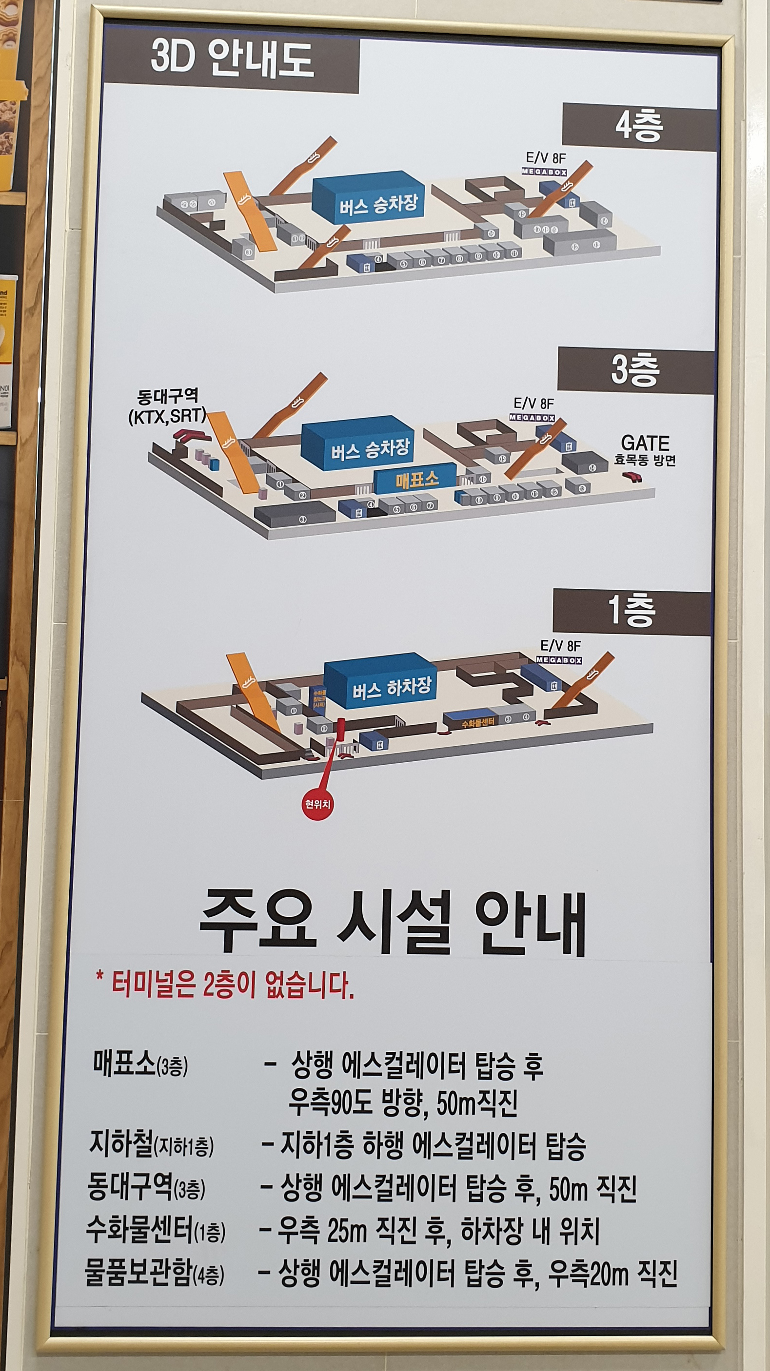 1층은 버스에서 내리는 곳이라서 고속버스, 시외버스 매표 및 발권은 3층에서 할 수 있다.