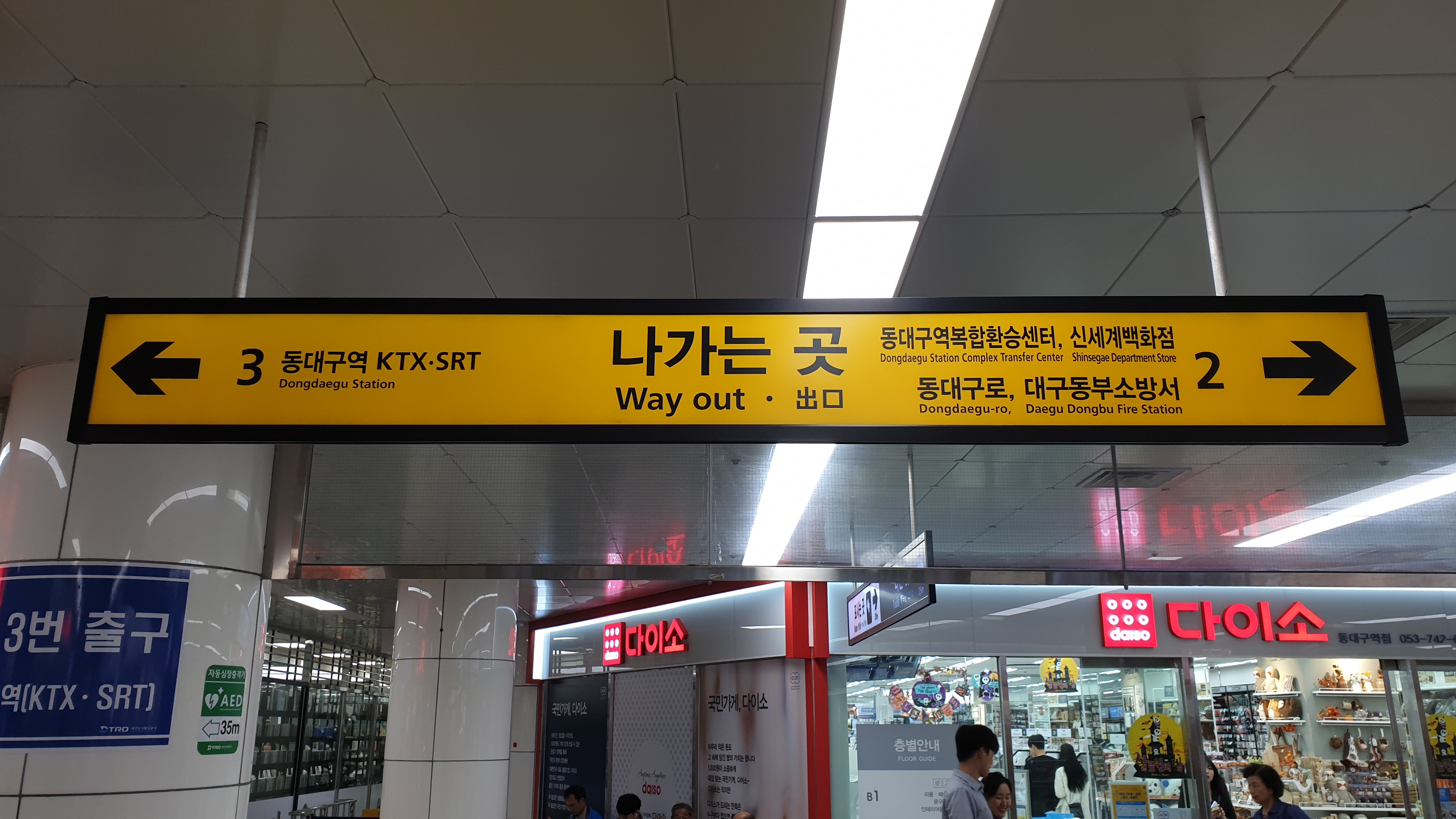 나가는 곳 3번 출구 쪽으로 가서 에스컬레이터를 타면 동대구역 광장이 나오고 광장을 가로질러 가면 동대구역으로 갈 수 있다.