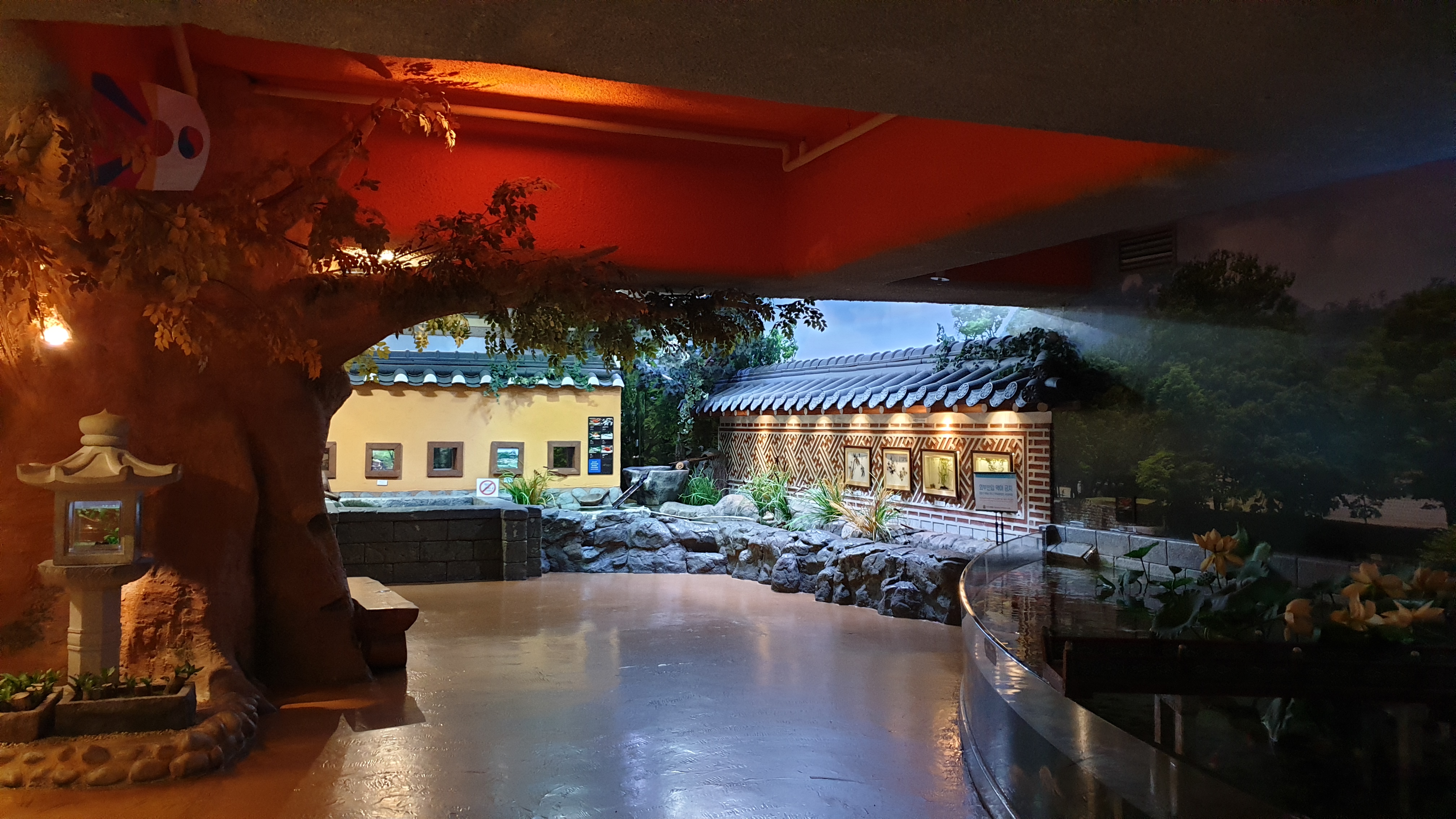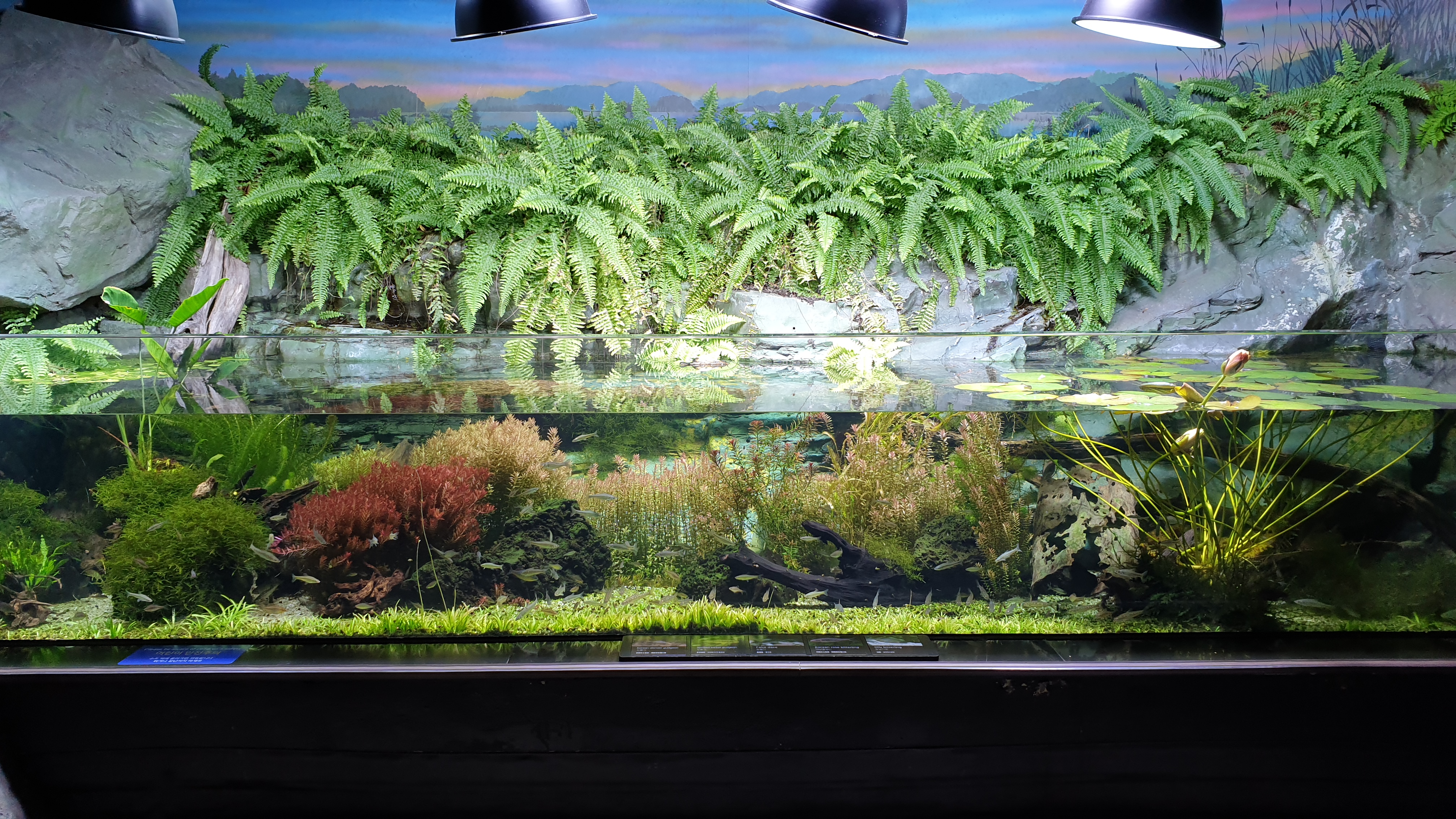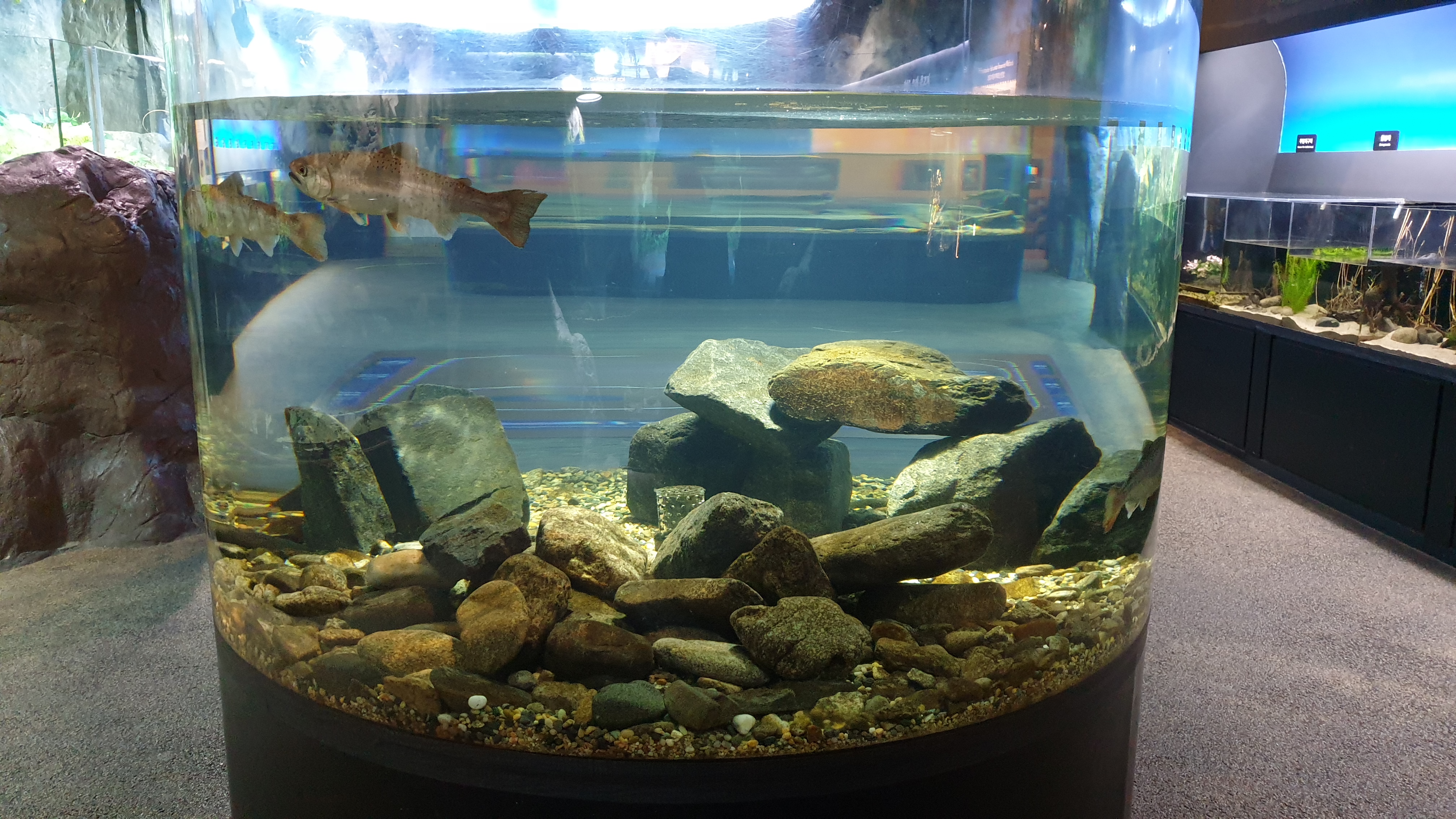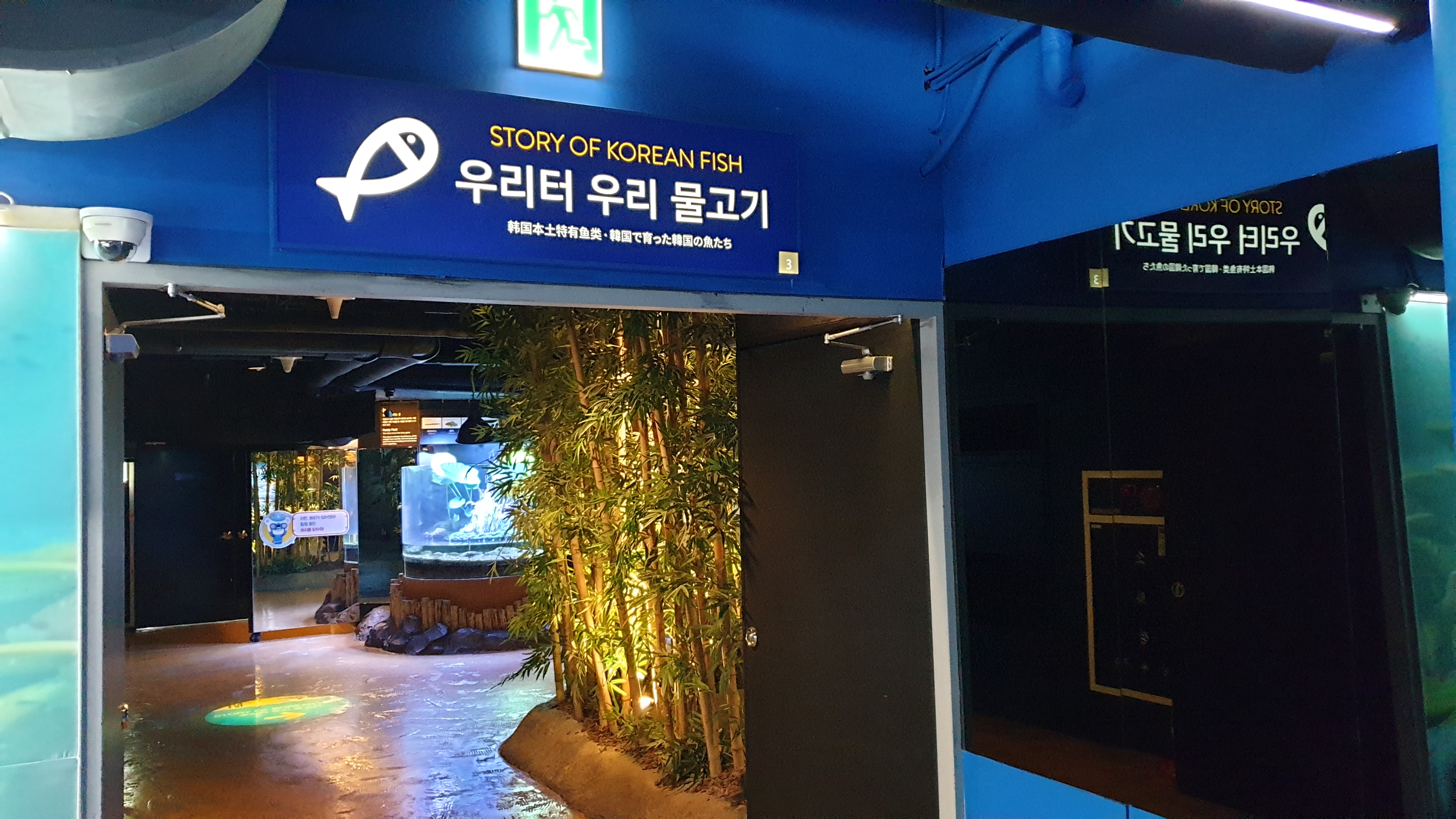 강에서 시작해 바다로 나아가는 수중 여행 컨셉으로 구성된 전시관이라서 우선 민물에서 시작한다. 강으로 흘러가기 전, 논에 물을 대기 위해 옆에 조그많게 파두는 둠벙에서 시작해 계곡의 상류-중류-하류를 따라 댐에 이르기까지 민물의 흐름을 따라 가는 구성이다.