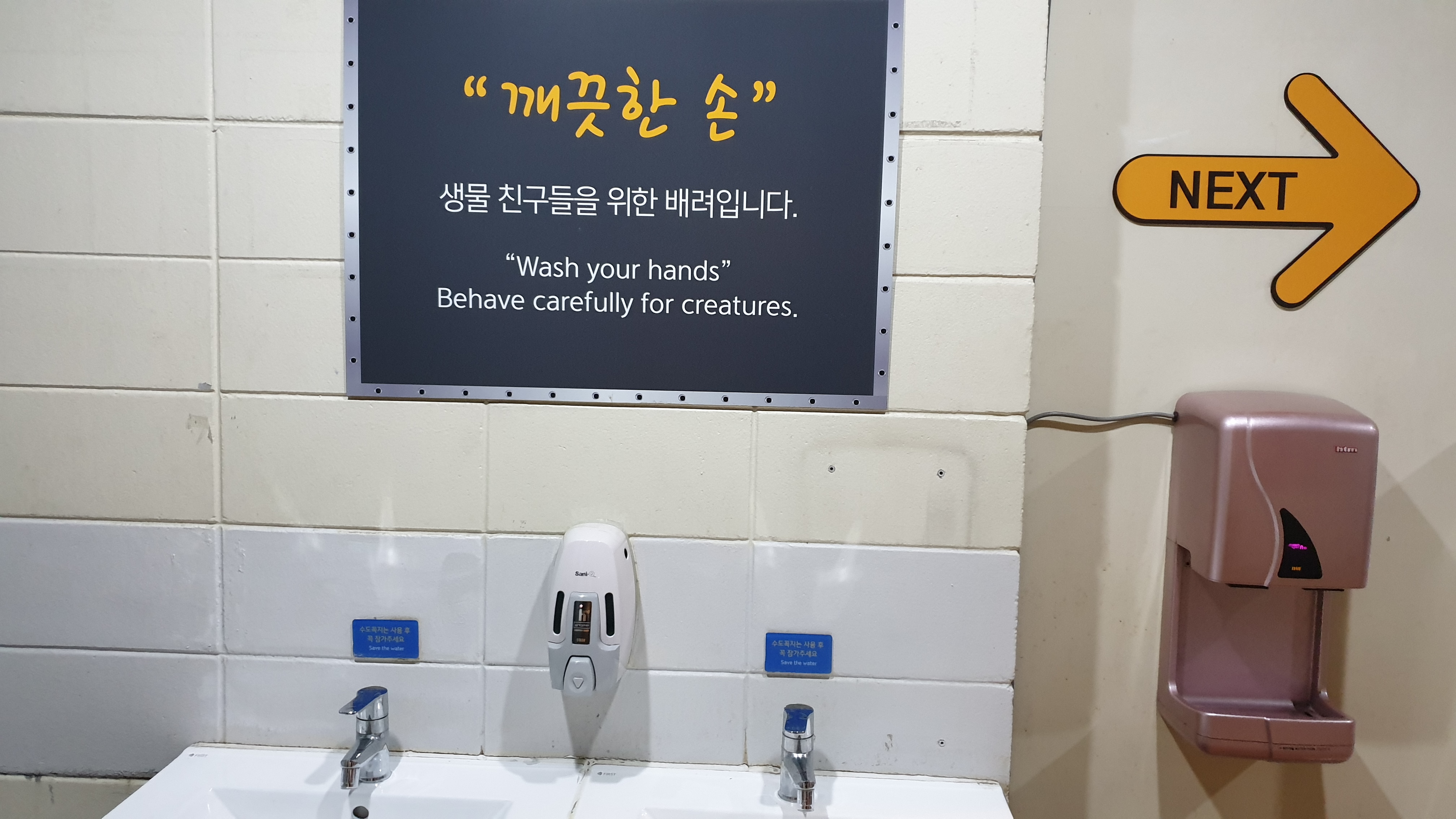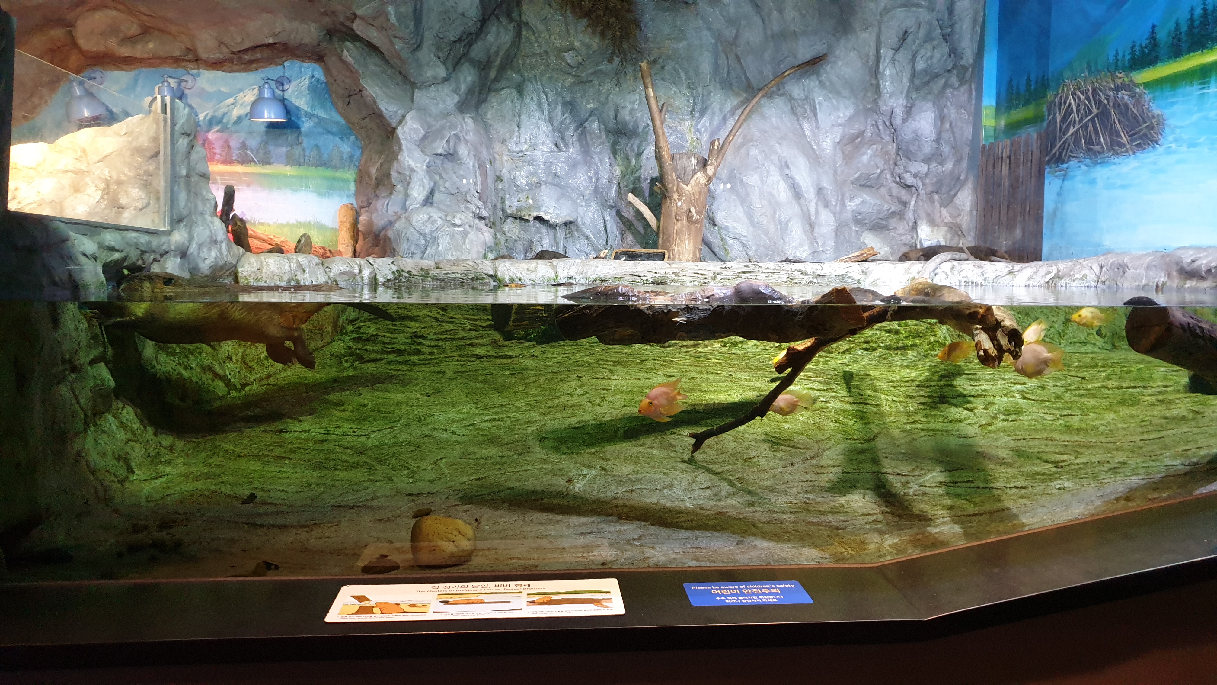저기서 손을 깨끗이 씻은 후 직접 수중 생물을 만져보면서 관찰 할 수 있다.