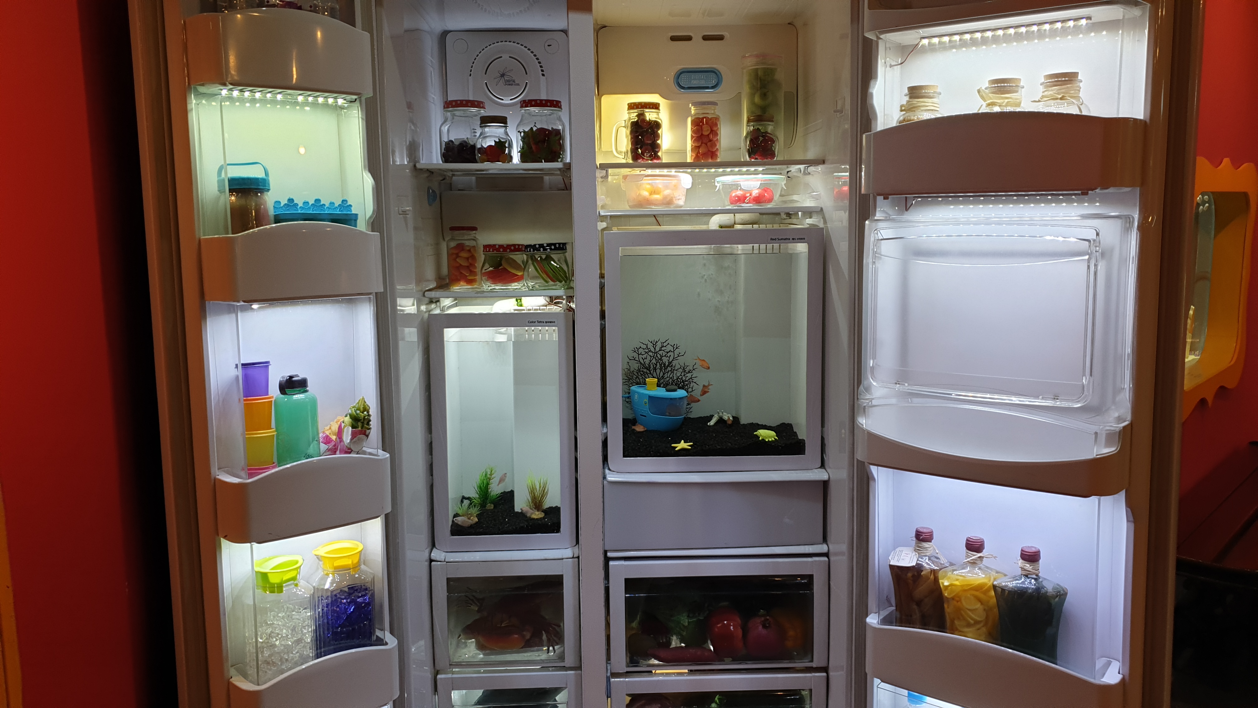 물고기가 사는 우체통, 책장, 냉장고, 침대, 공중전화 부스.