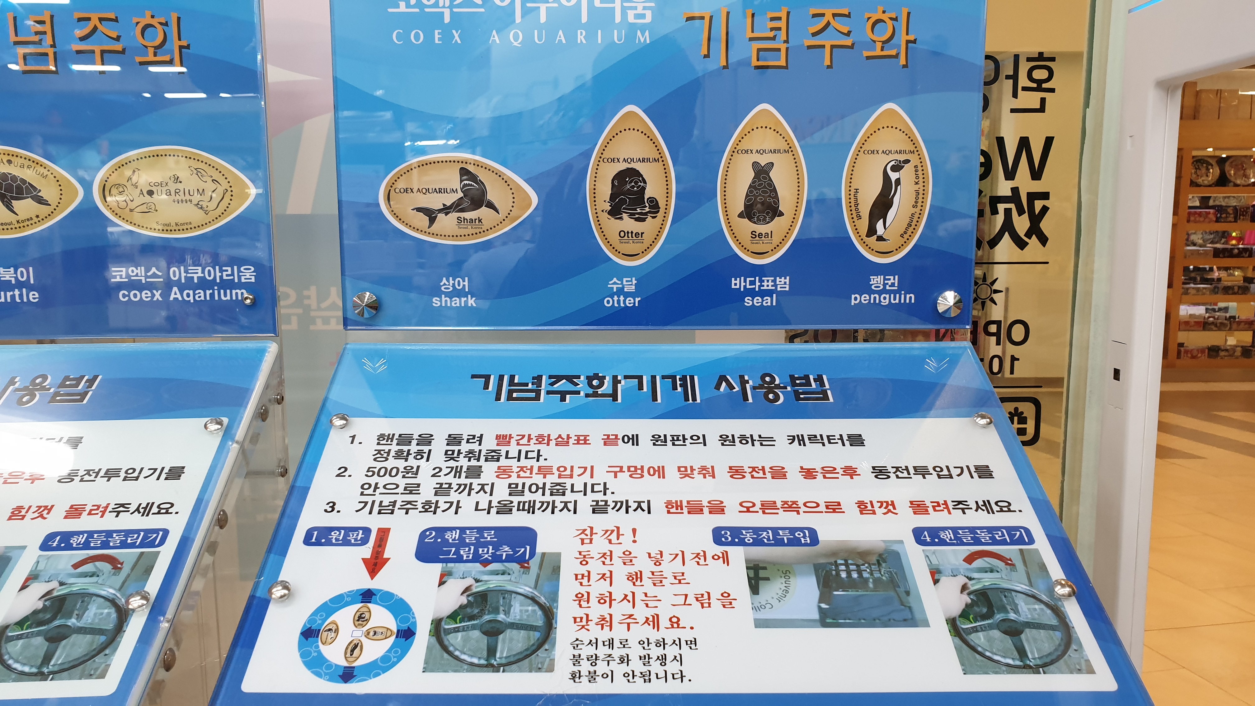 전시관 군데군데 있었던 아쿠아리움 기념주화 기계도 있다.