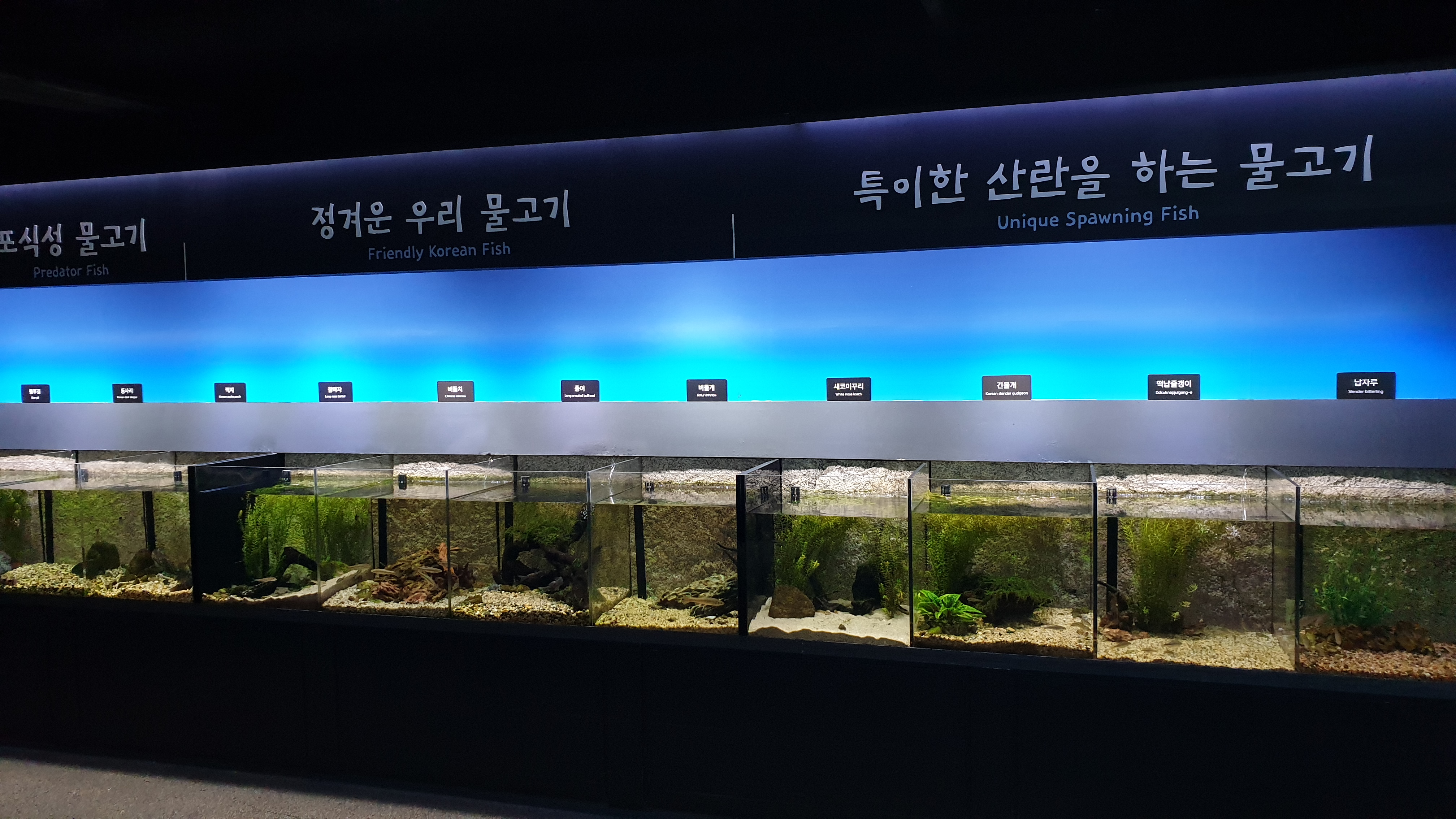 우리에게 친숙한 메기, 미꾸리, 쏘가리와 같은 정겨운 우리 물고기를 볼 수 있다.
