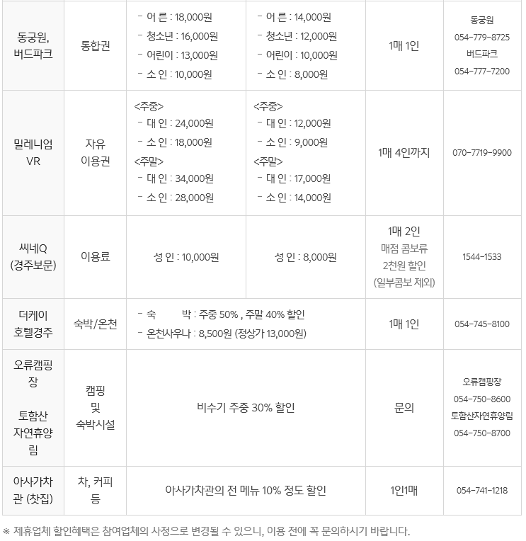 - 대 상 : 2019 경주세계문화엑스포 입장권 소지자