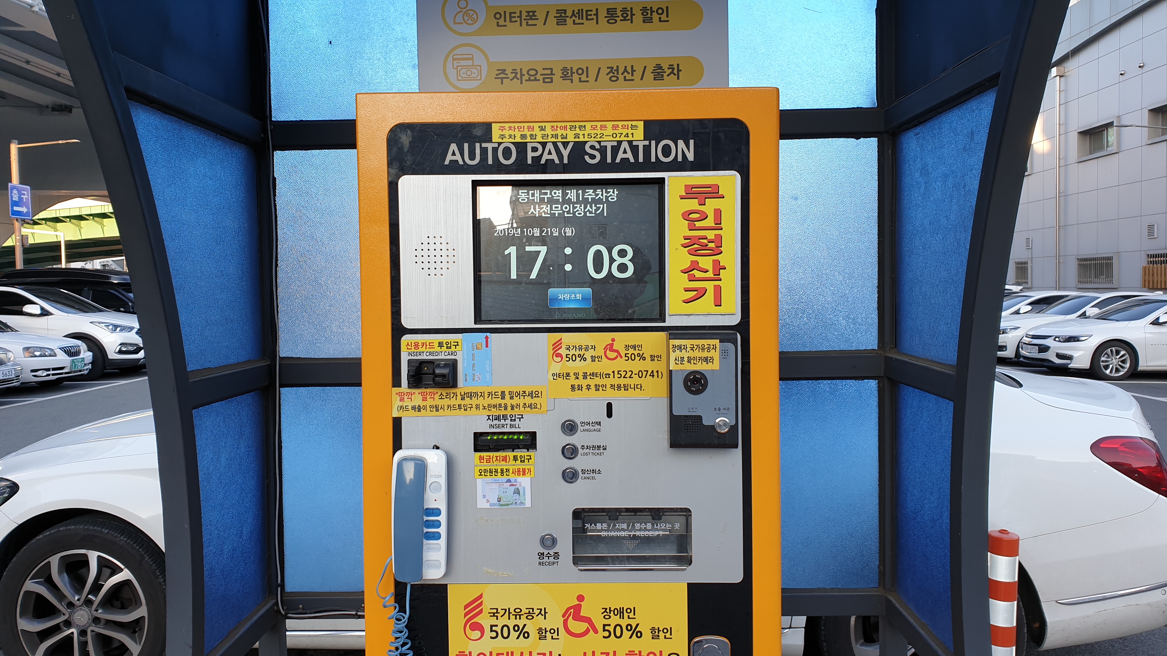 신용카드 또는 체크카드로 결제가 가능한 정산기만 있는 무인 주차장이다.