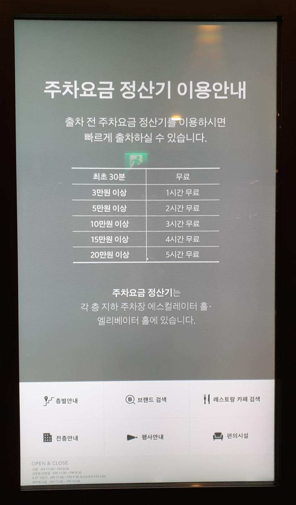 최초 30분 무료 주차(초과 10분당 1,000원)