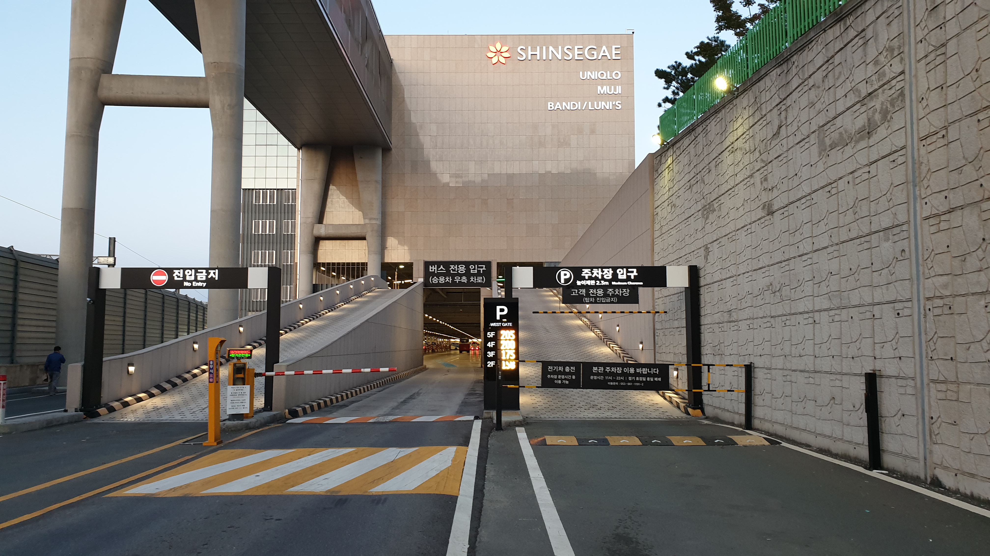 이 곳에서 우회전하면 신세계 파미에타운 주차장, 좌회전하면 백화점 주차장.