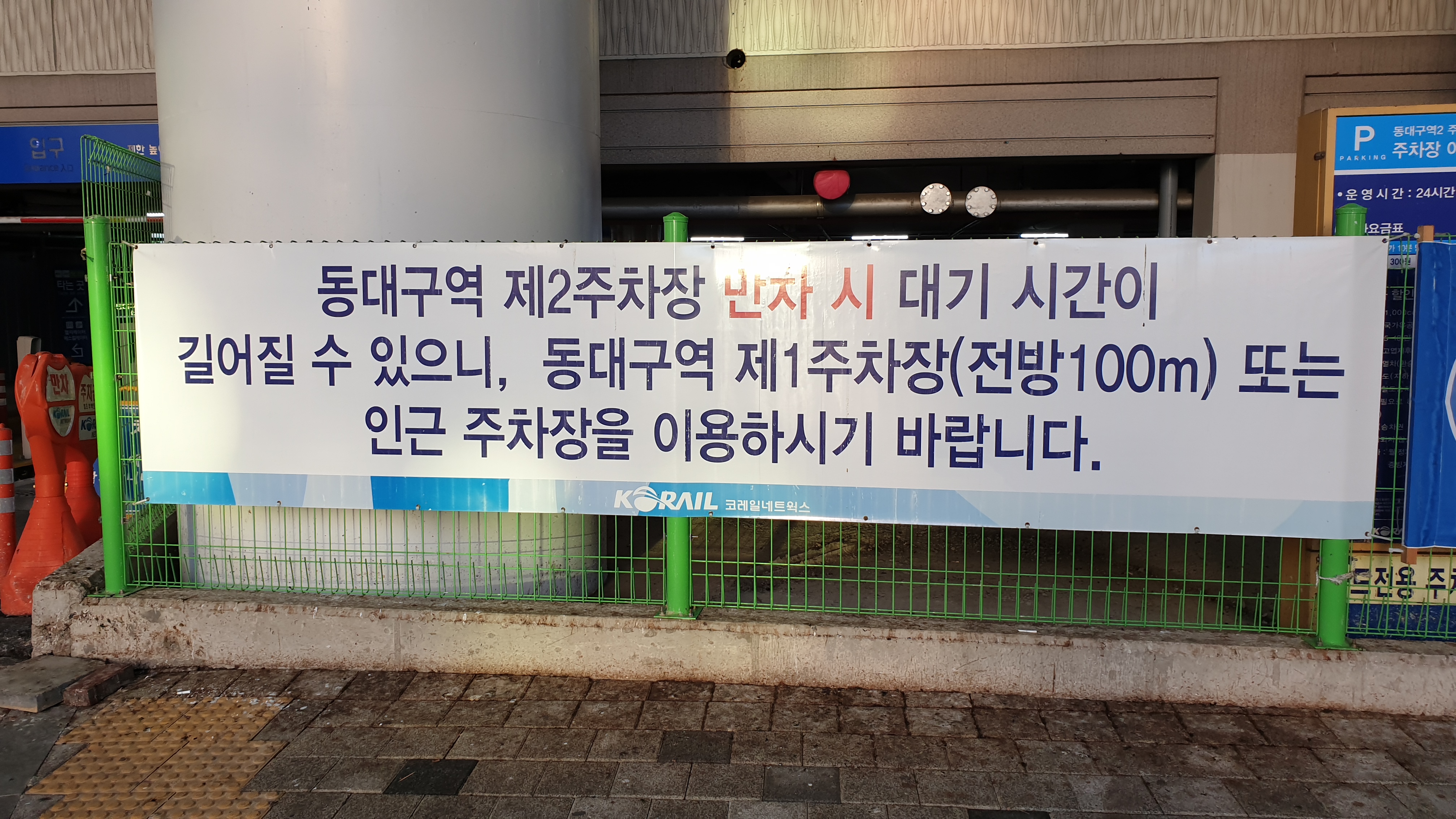 동대구역 2주차장은 주차장과 동대구역이 이어져 있고 열차 이용 할인이 되기 때문에 기차를 탄다면 2주차장을 이용하는 게 가장 싸고 편리하다.