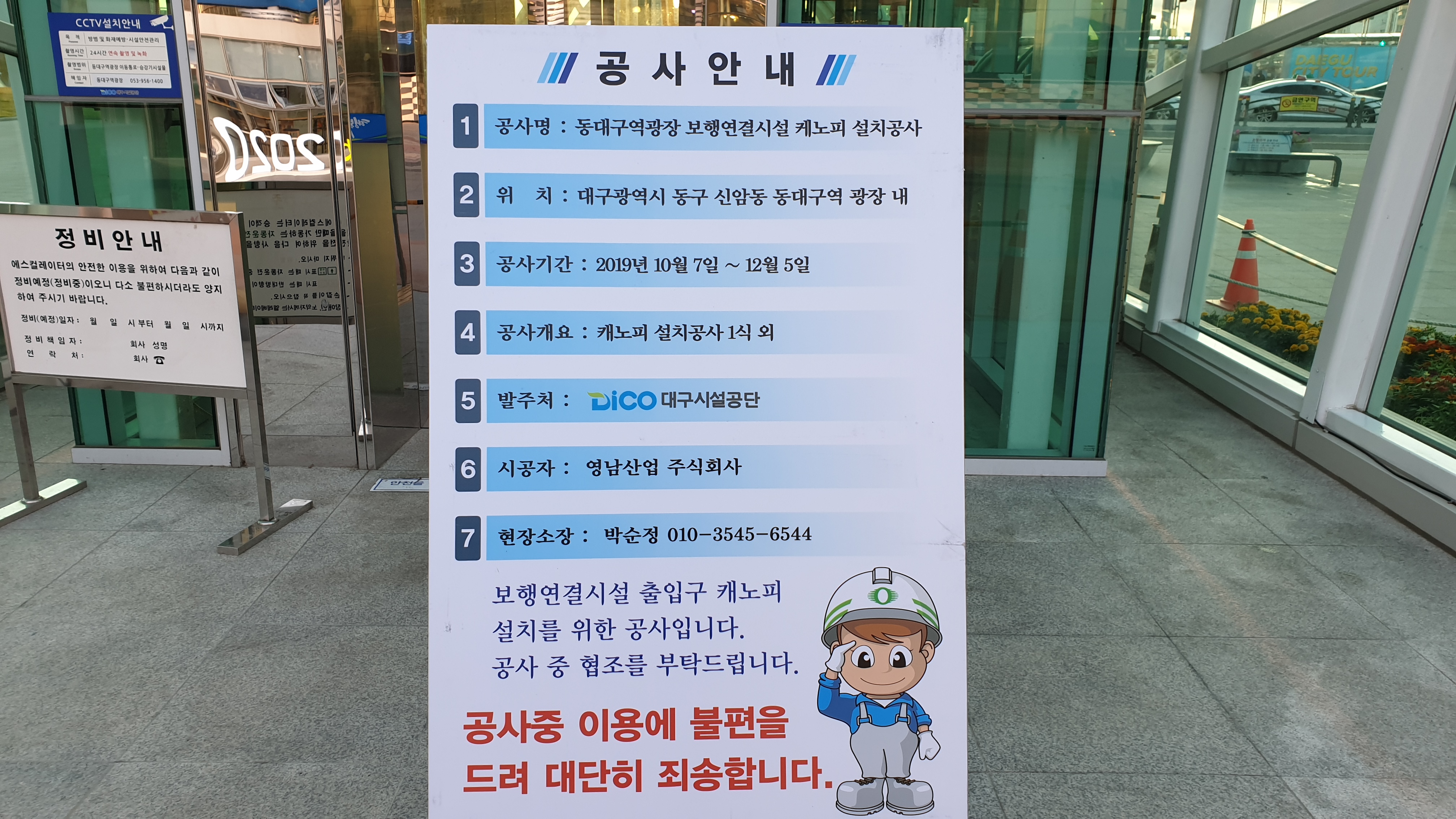 하지만, 12월 초까지 지하 연결통로 캐노피 설치 공사중이라 버스승강장쪽 행단보도를 건너가야 함.
