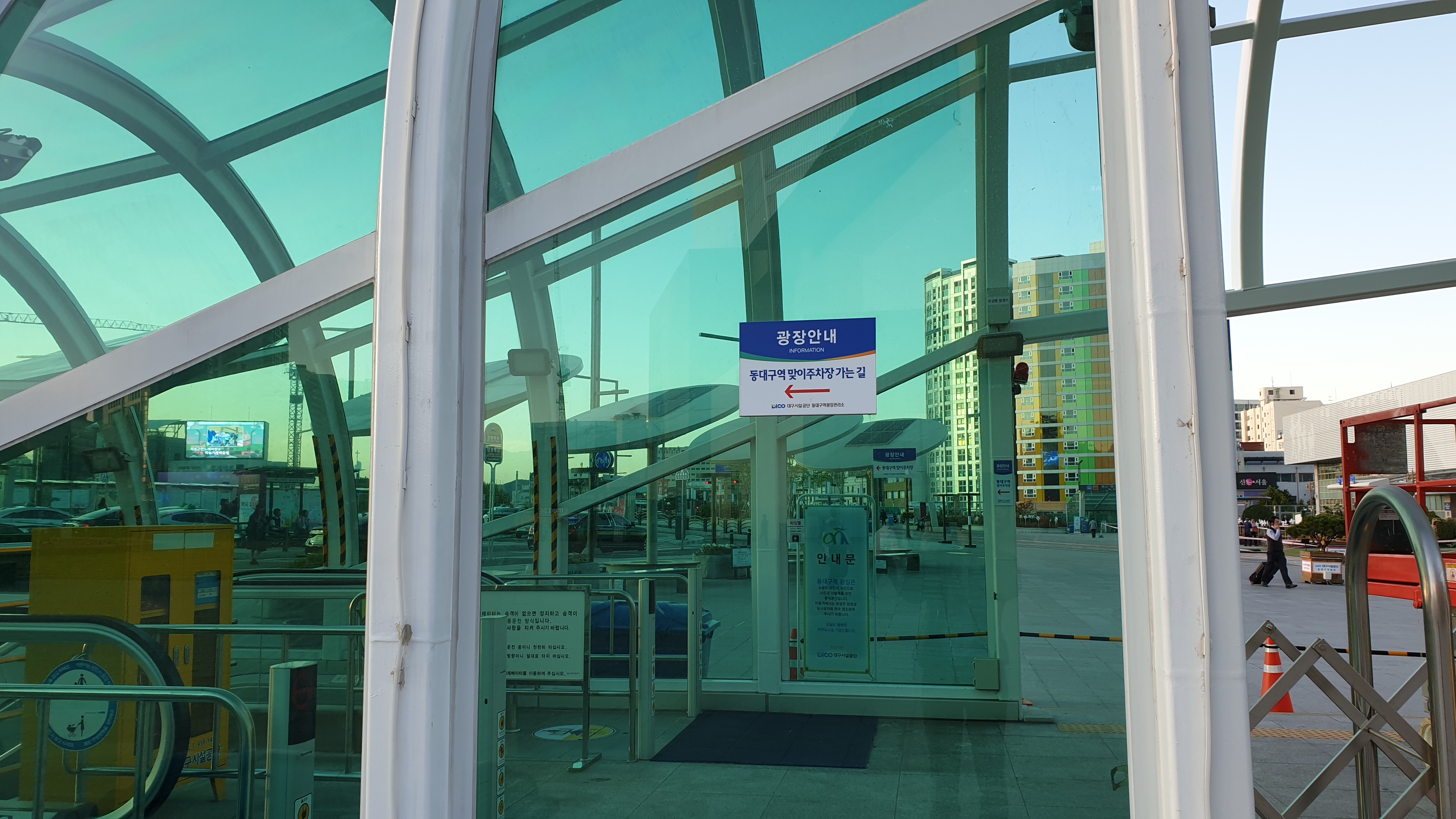 맞이방 주차장에서 엘리베이터나 에스컬레이터를 이용해 지하통로를 지나면 동대구역 광장으로 바로 연결된다.