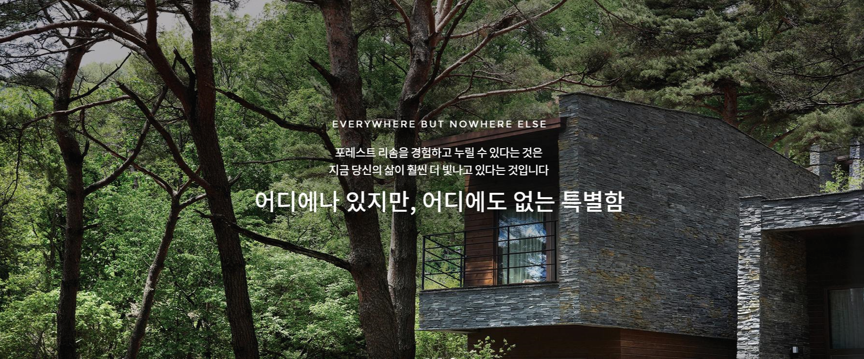울창한 원시림의 아름다운 사계를 즐길 수 있는 포레스트 리솜은 자연을 훼손하지 않는 방식으로 개발된 에코힐링 리조트입니다. 자연과의 교감을 통해 놀고, 먹고, 즐기기만 하던 소모형 휴식
