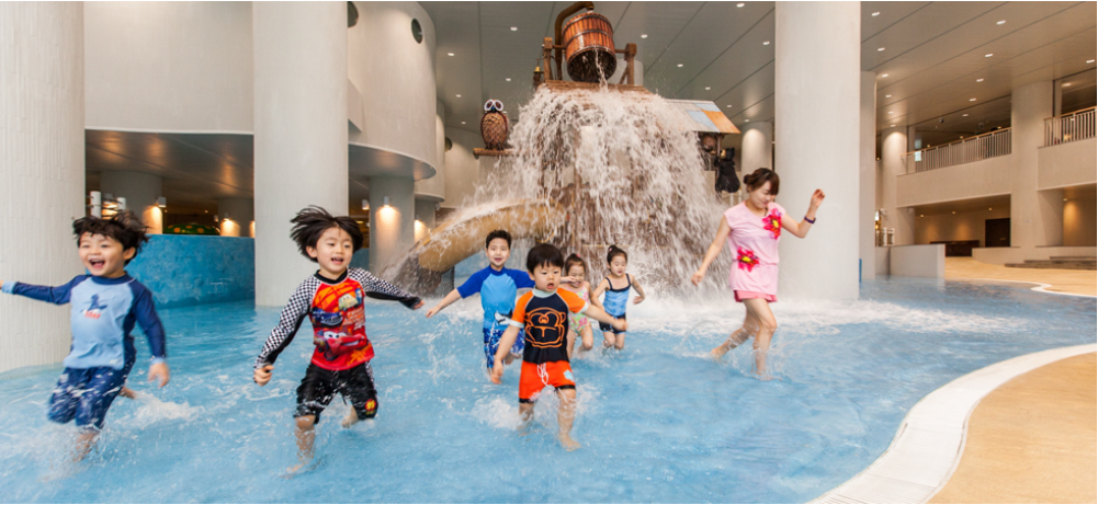 보호자와 아이들이 함께 즐길 수 있는 놀이풀로키즈슬라이드와유수풀, 비치풀로 구성되어 있습니다.( 구명조끼 및 튜브를 반드시 착용해야 합니다.· 7세 미만의 어린이는 보호자를 동반한 경우에만 이용 가능합니다.)
