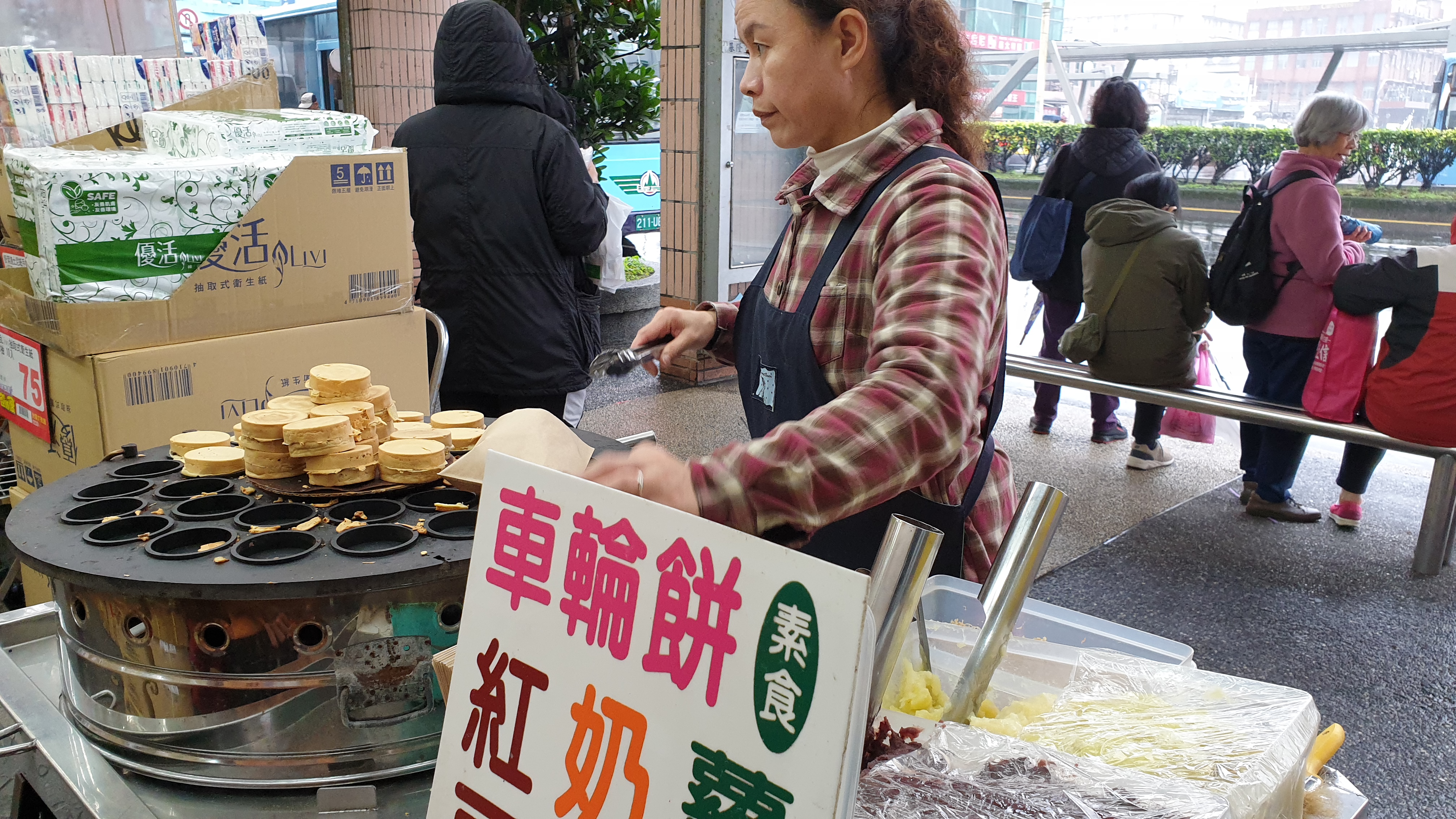 디저트 간식도 먹어본다. 여기서는 한개에 20NT로 먹었는데 파는곳 마다 조금씩 재료와 금액이 다른 것 같았다. 단팥과 슈크림이 주재료이다.