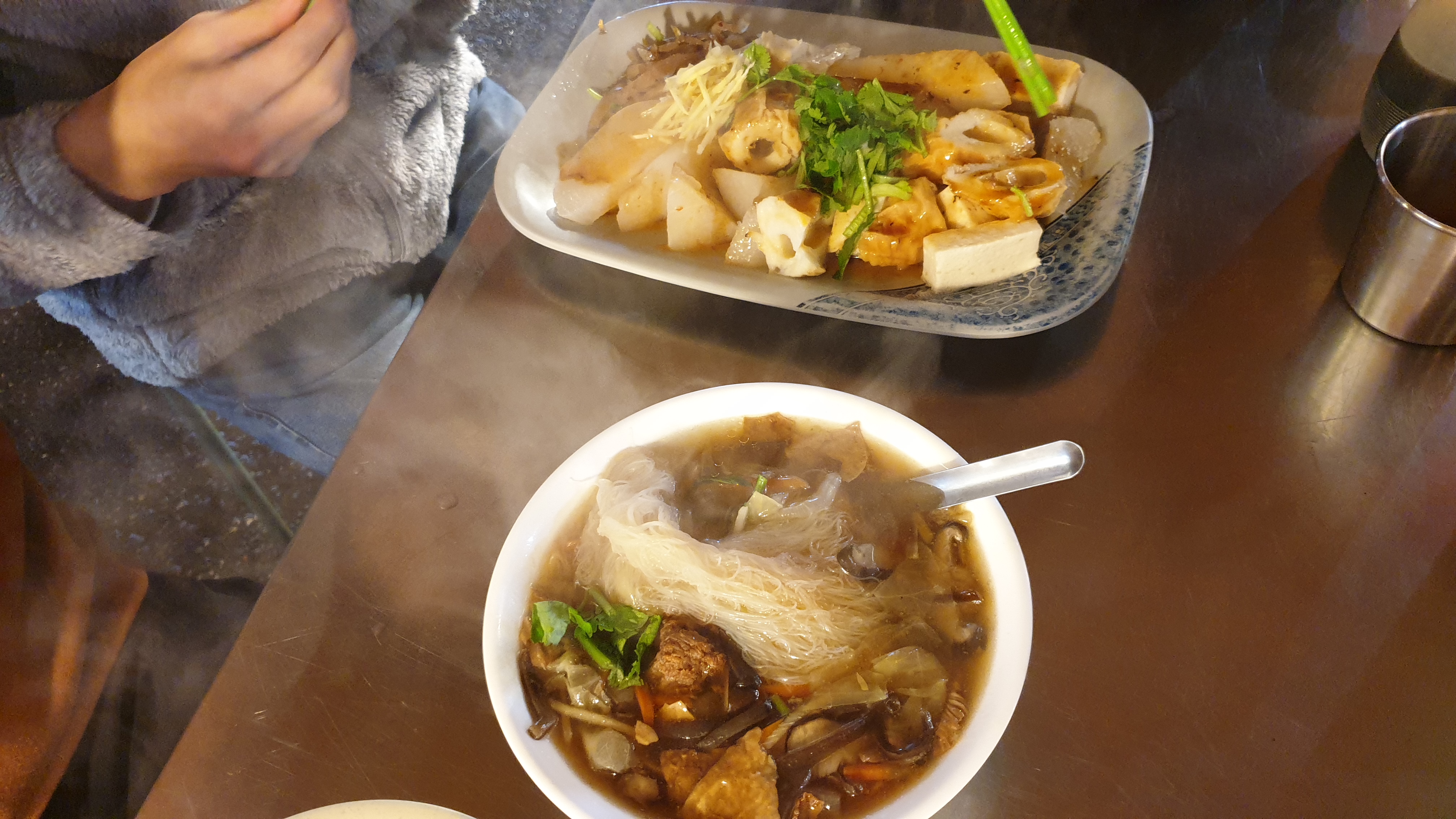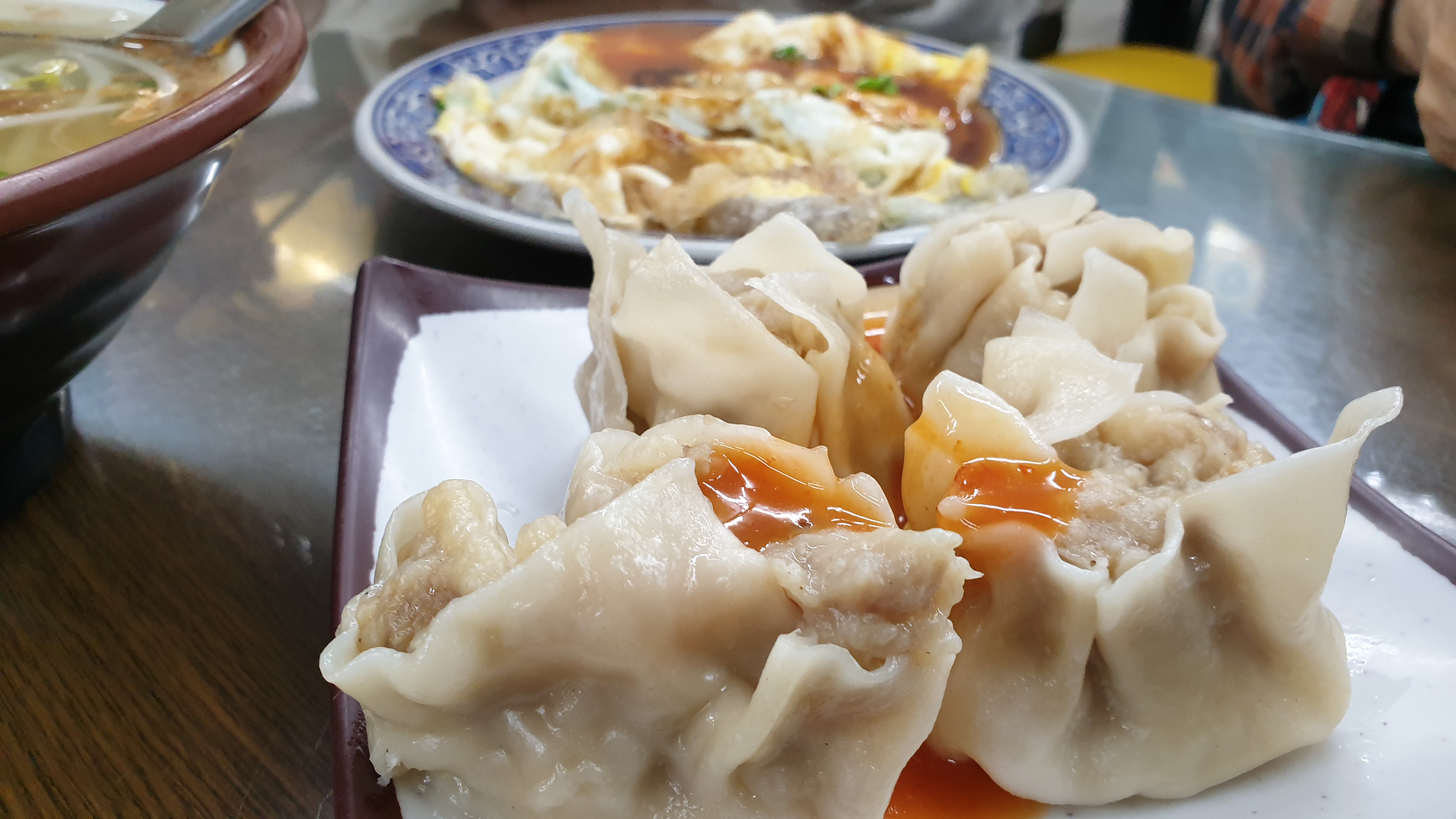 우리가 주문한 요리는 면, 만두, 전분이 들어간 달걀 요리, 소스는 동일하다. 맛도 거부감 없이 괜찮고, 가격도 180NT = 8,000원으로 착하다.