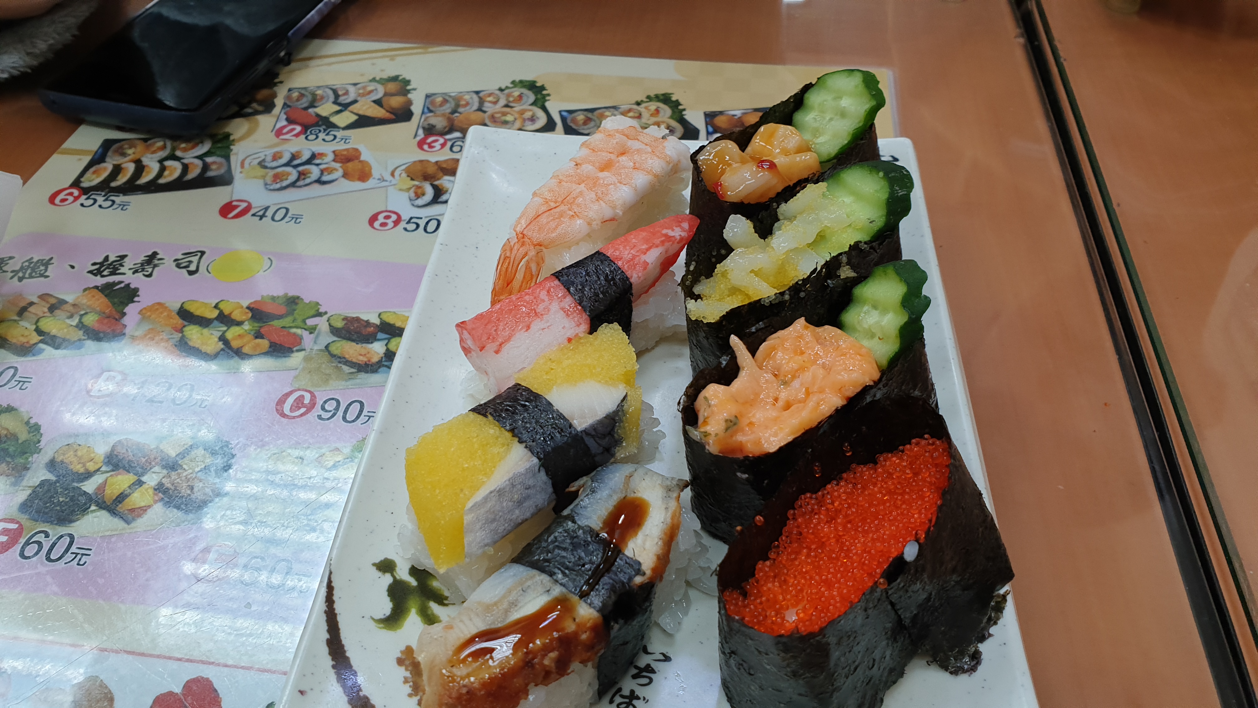 여기선 120NT = 5,000원 정도의 8pc 초밥을 2개 시키고, 게살 초밥을 4개 더 주문했다.