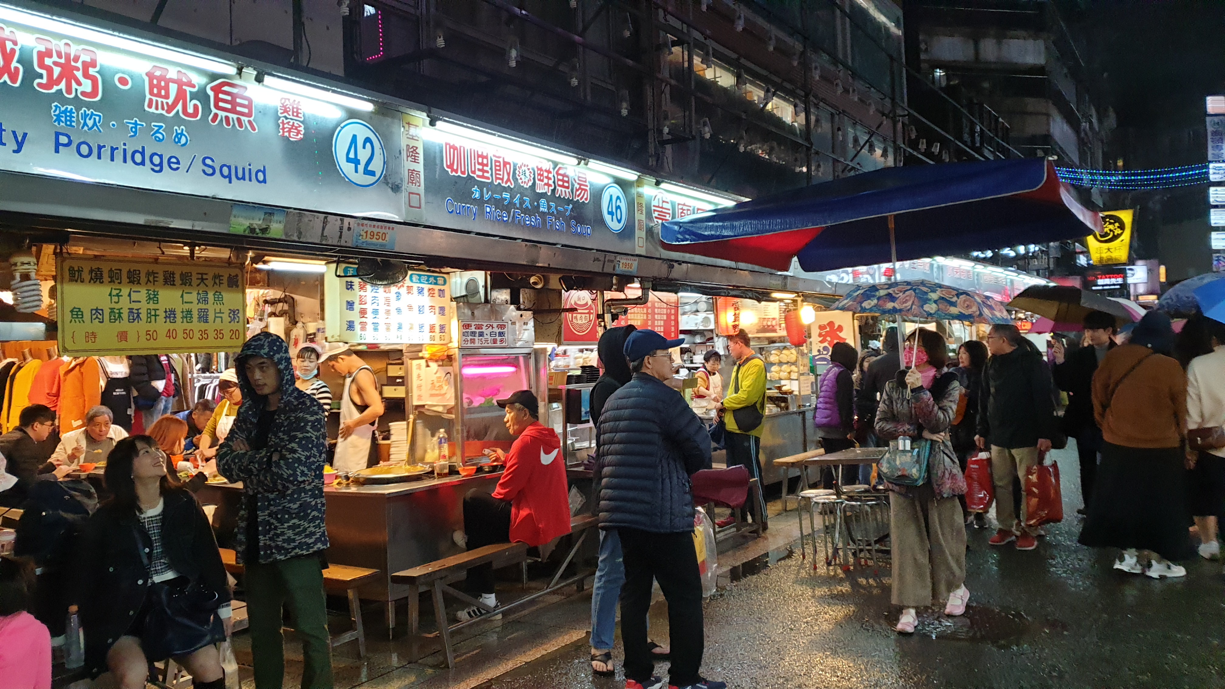지룽 사람들이 모두 여기 와서 저녁을 먹는 듯 정말 사람이 많다. 수요일, 목요일 이곳을 방문했는데 주말에는 더 많은 사람들이 모이겠지. 이제 눈 구경은 그만하고 입 구경을 해본다.
