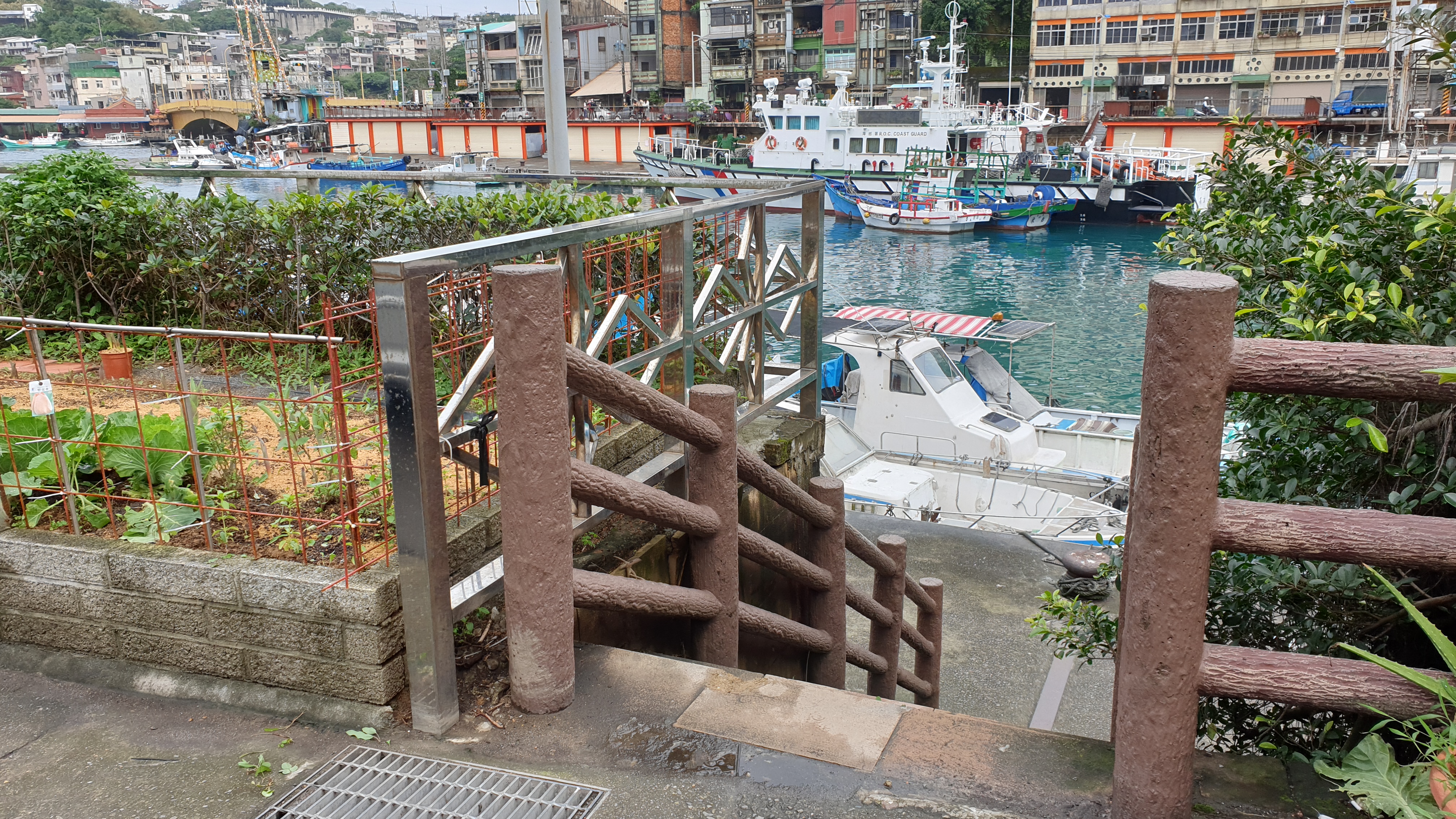 이 위치에서 뒤로 돌아 버스가 왔던 길로 20m 정도 가면 아래와 같이 항구로 내려가는 계단이 있다.