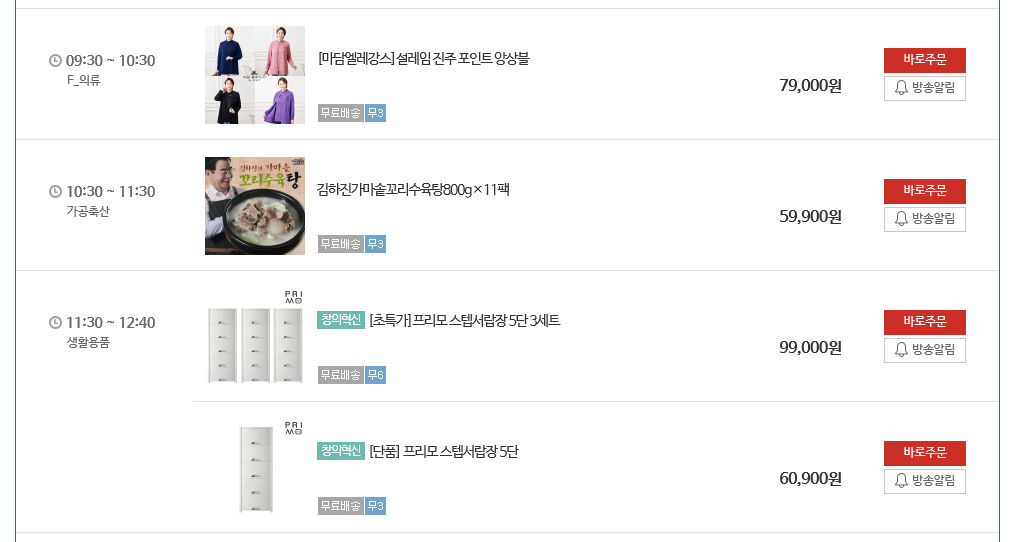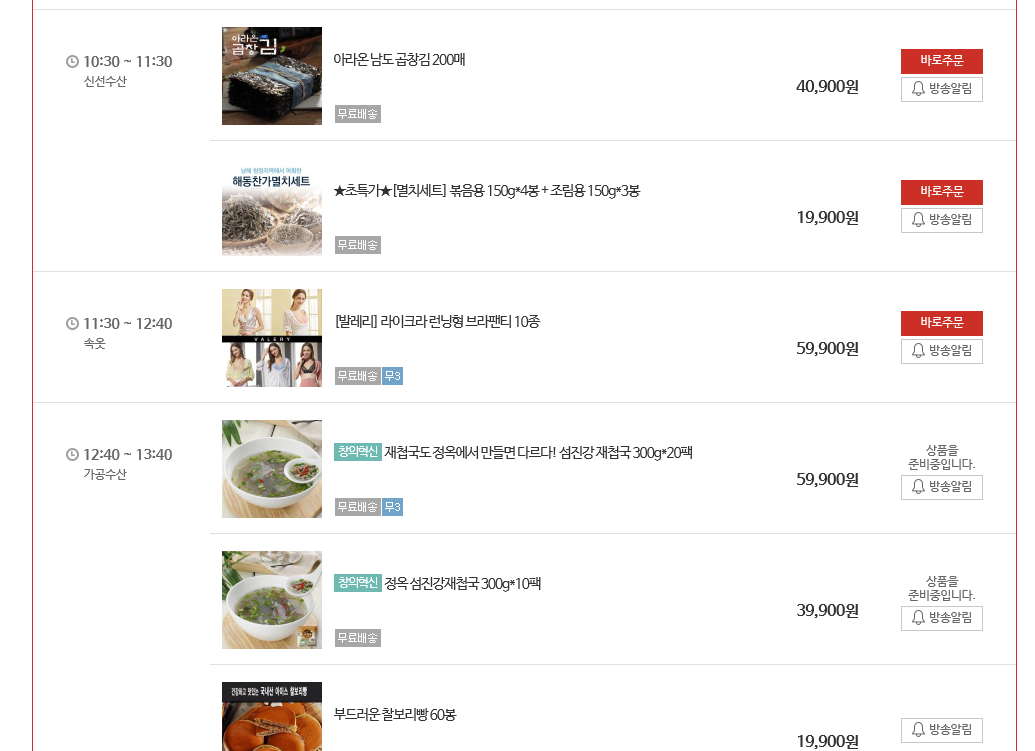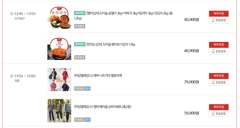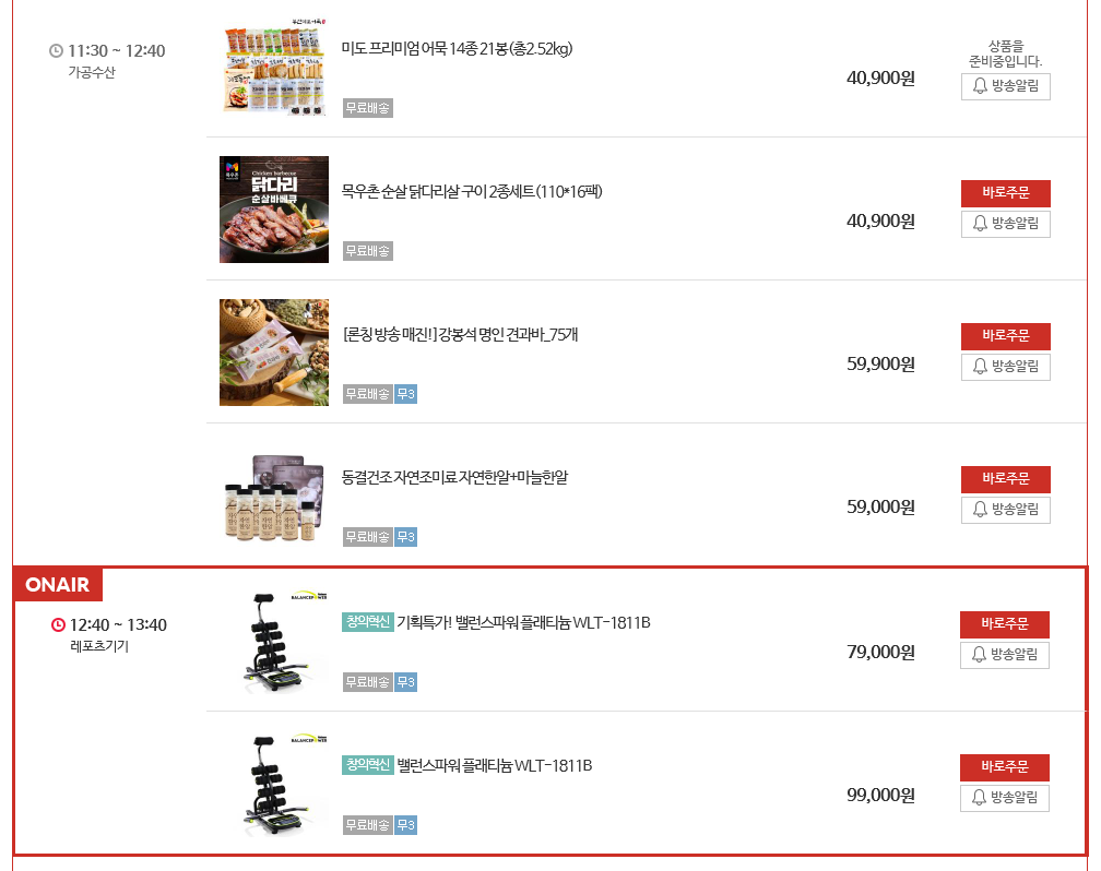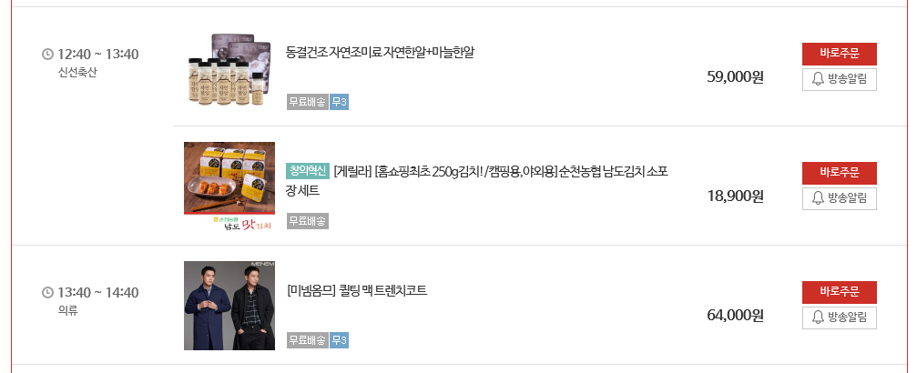 편성표 시간12:40분 홈쇼핑 시청시 직전방송마감시간 차이가 있어 12시 30분 시작이라는것을 알수있었다