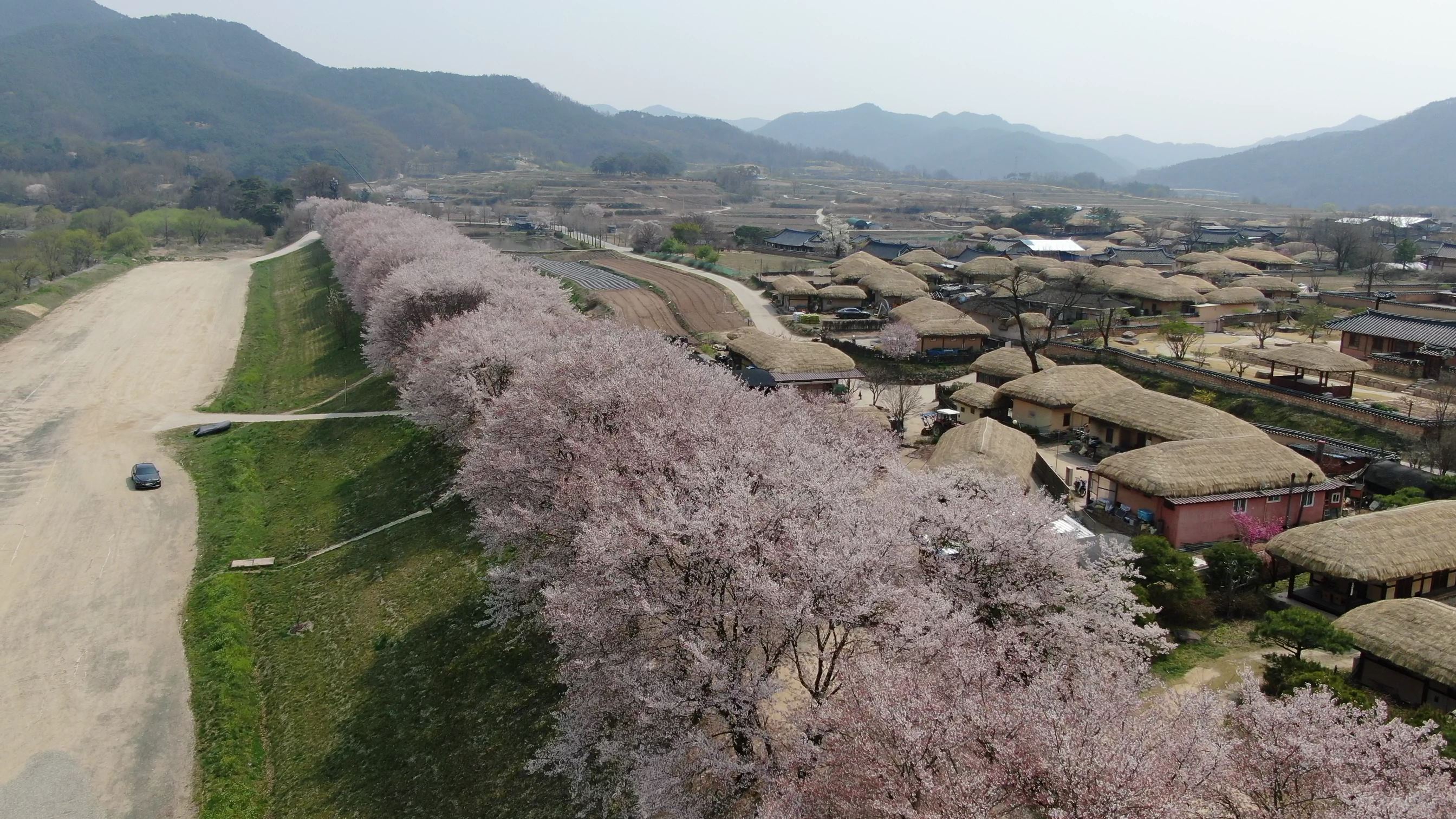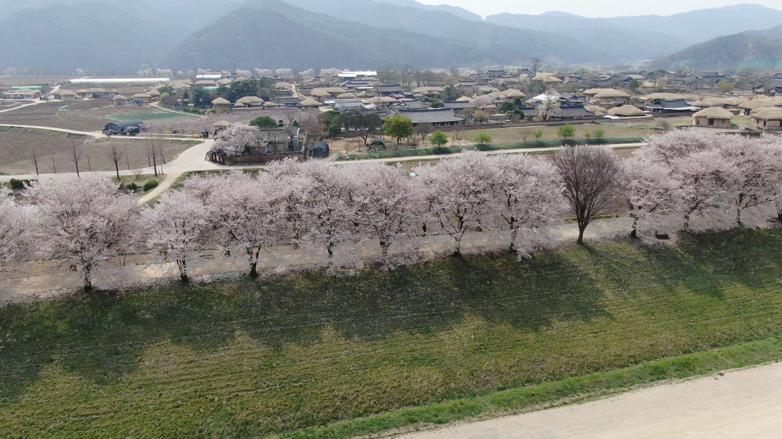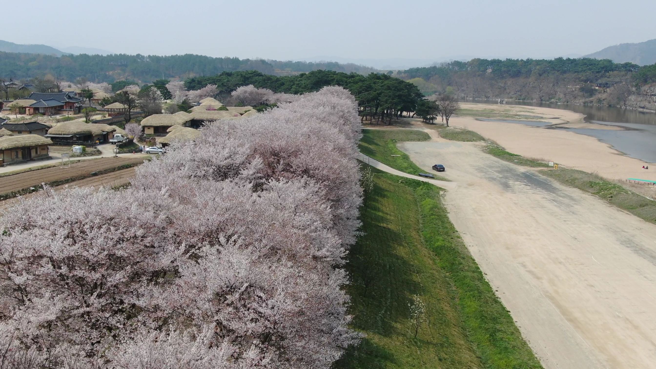 하늘에서 바라본 하회마을은 제방을 따라 만개한 벚꽂이 마을을 둘러싸고 있어 기와와 초가, 부용대 등 한국의 전통미와 어우러져 한 폭의 동양화를 연상케 한다.