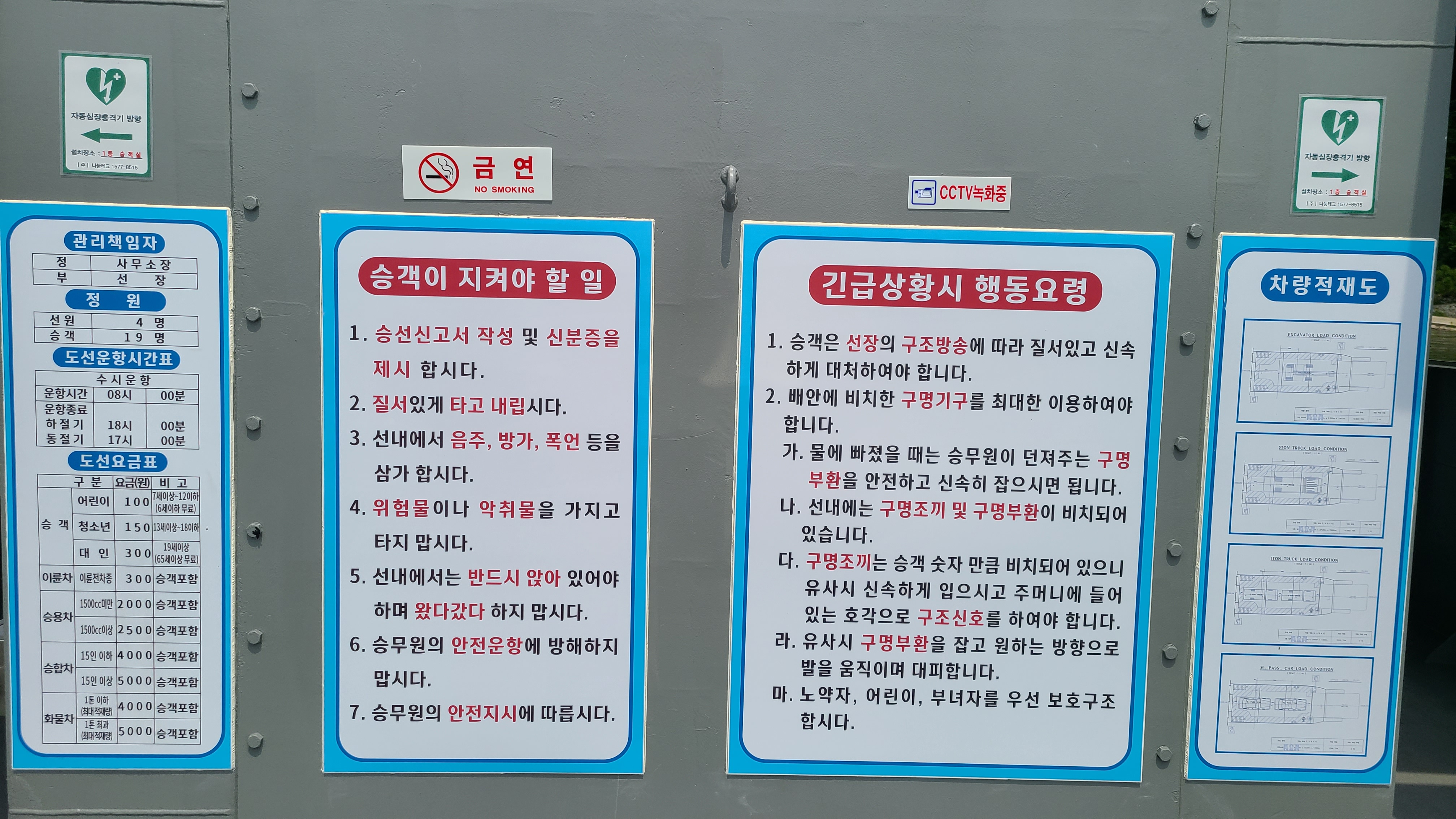 도선 운항 알림판을 찬찬히 읽어보면 이용방법과 요금에 대해 알 수 있다.