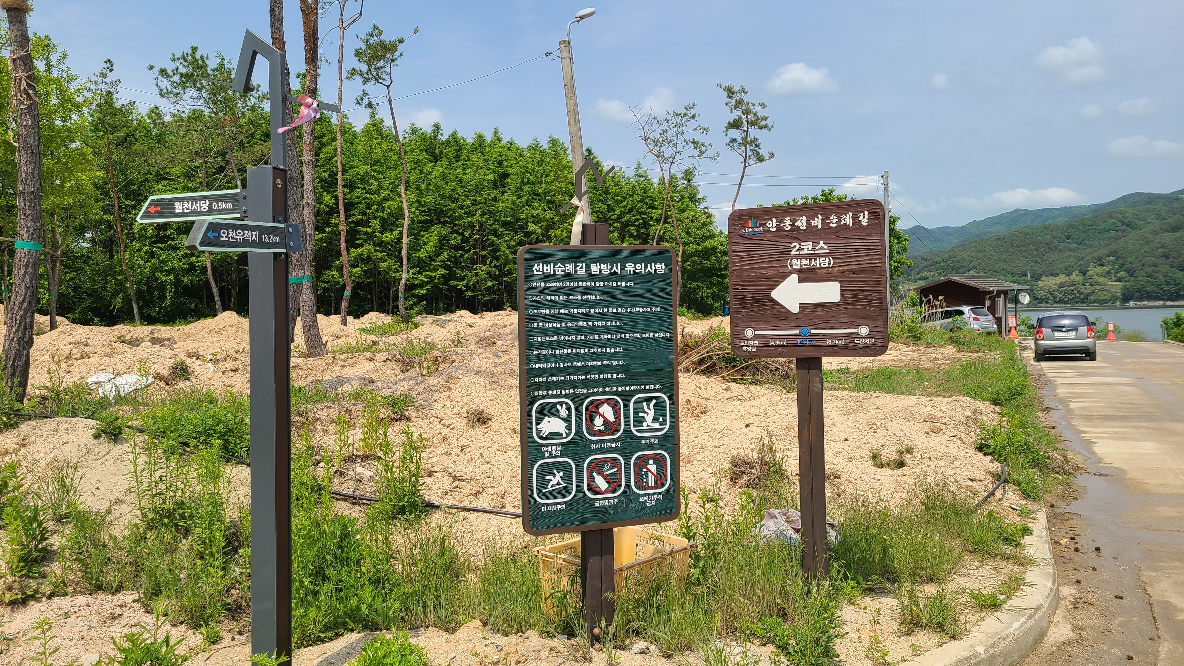조심조심 후진으로 배에서 내려 올라가다보면 선비순례길 2코스 표지판을 볼 수 있다.