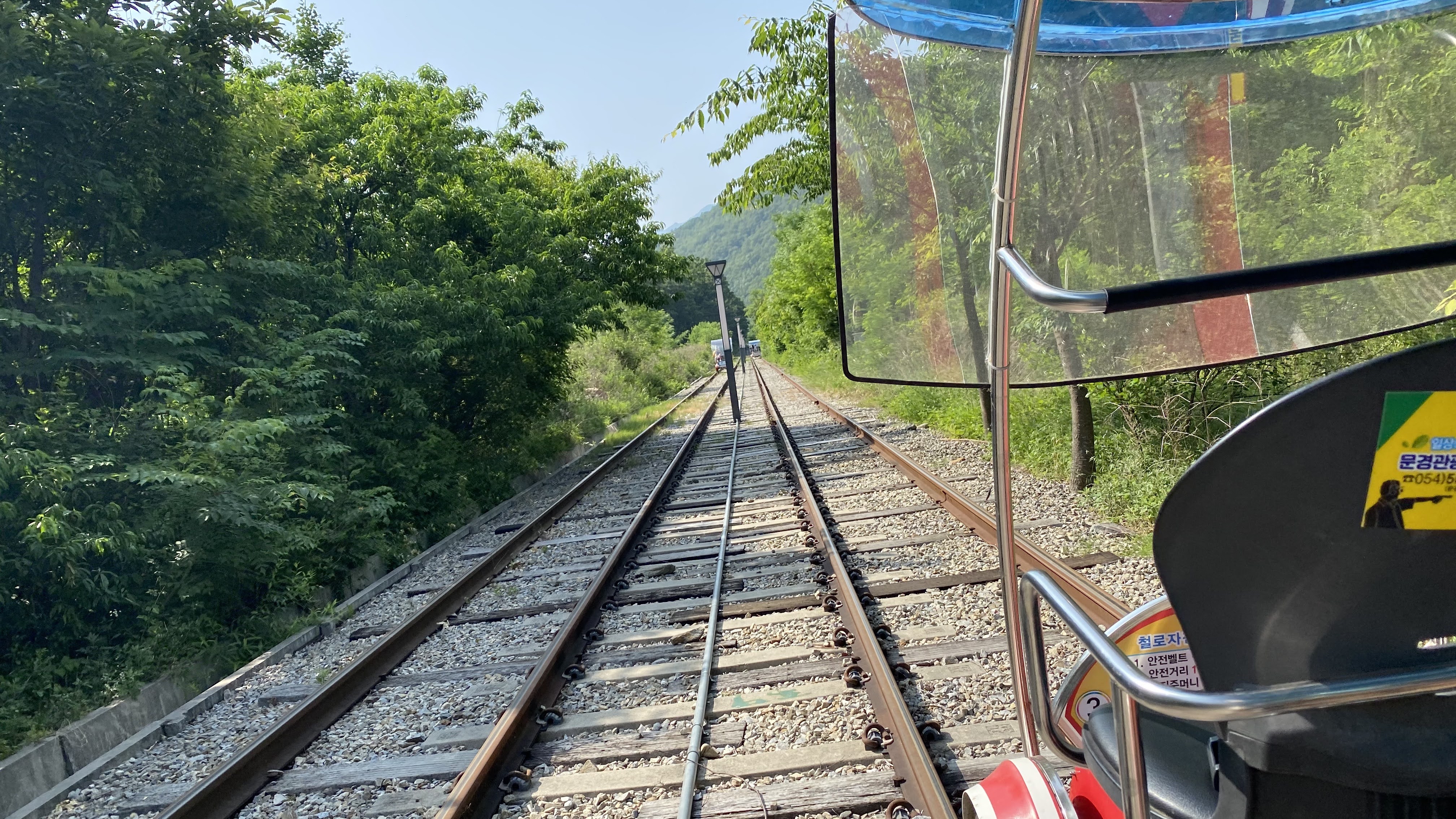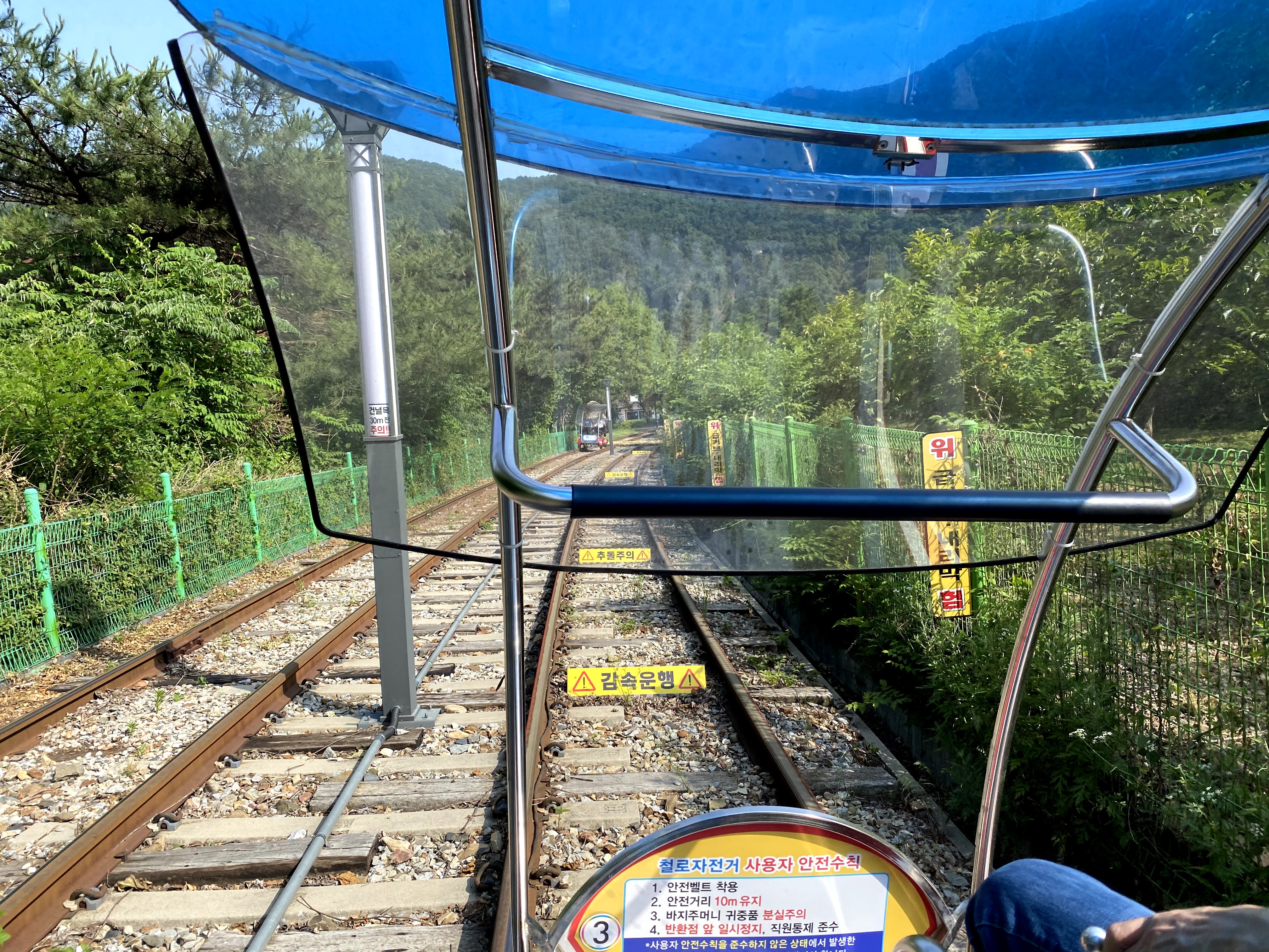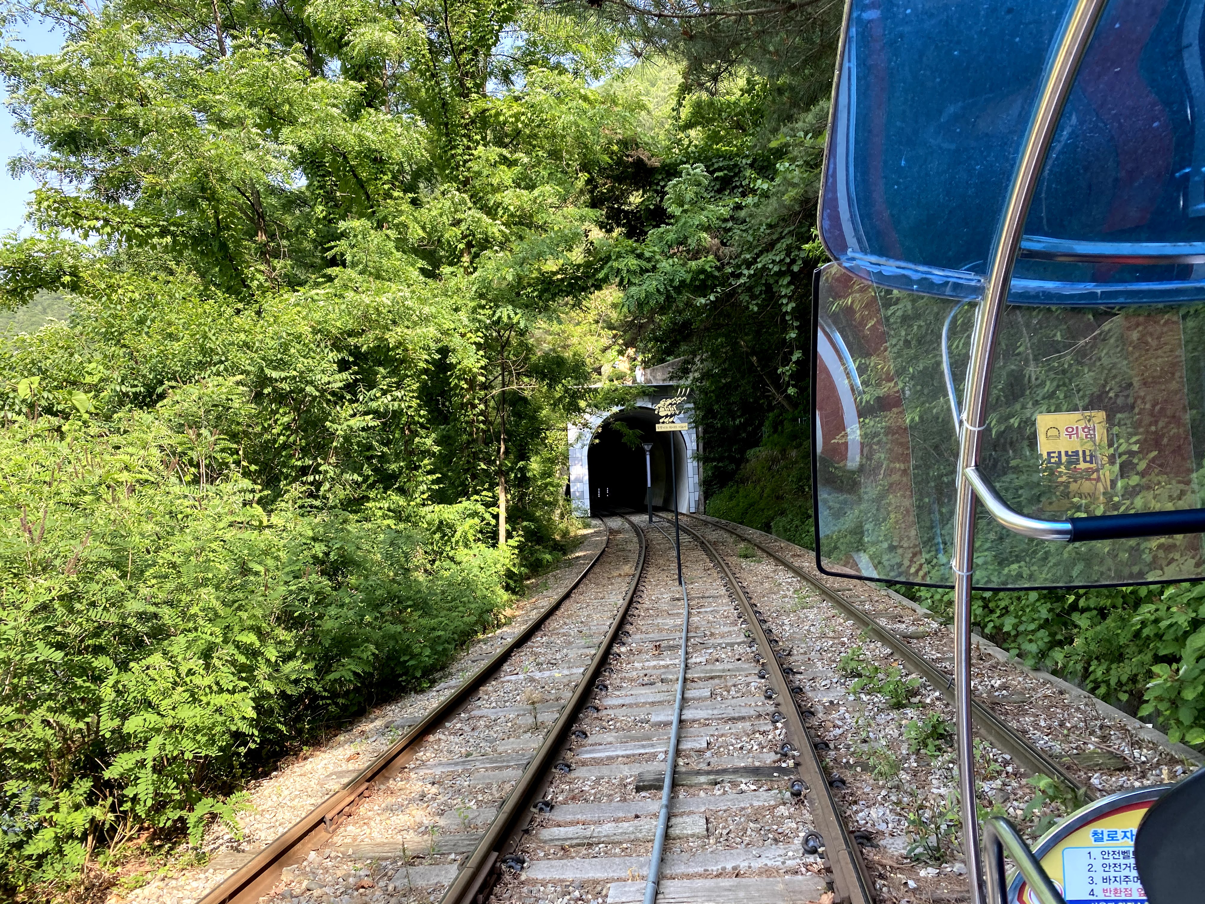 앞에서 천천히 가면 나도 빨리 못 가는 레일바이크의 특성상 앞 팀의 속도에 따라 다소 차이는 있다.