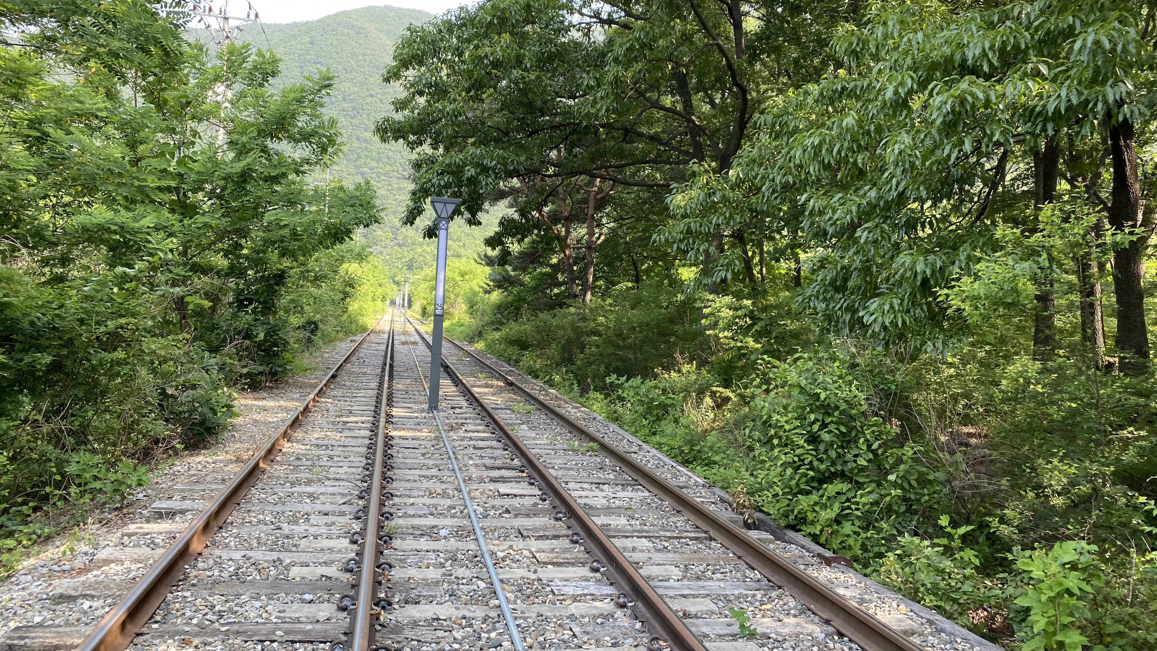 터널을 나와 울창한 나무 사이로 곧게 이어진 철로를 따라 계속 달린다.