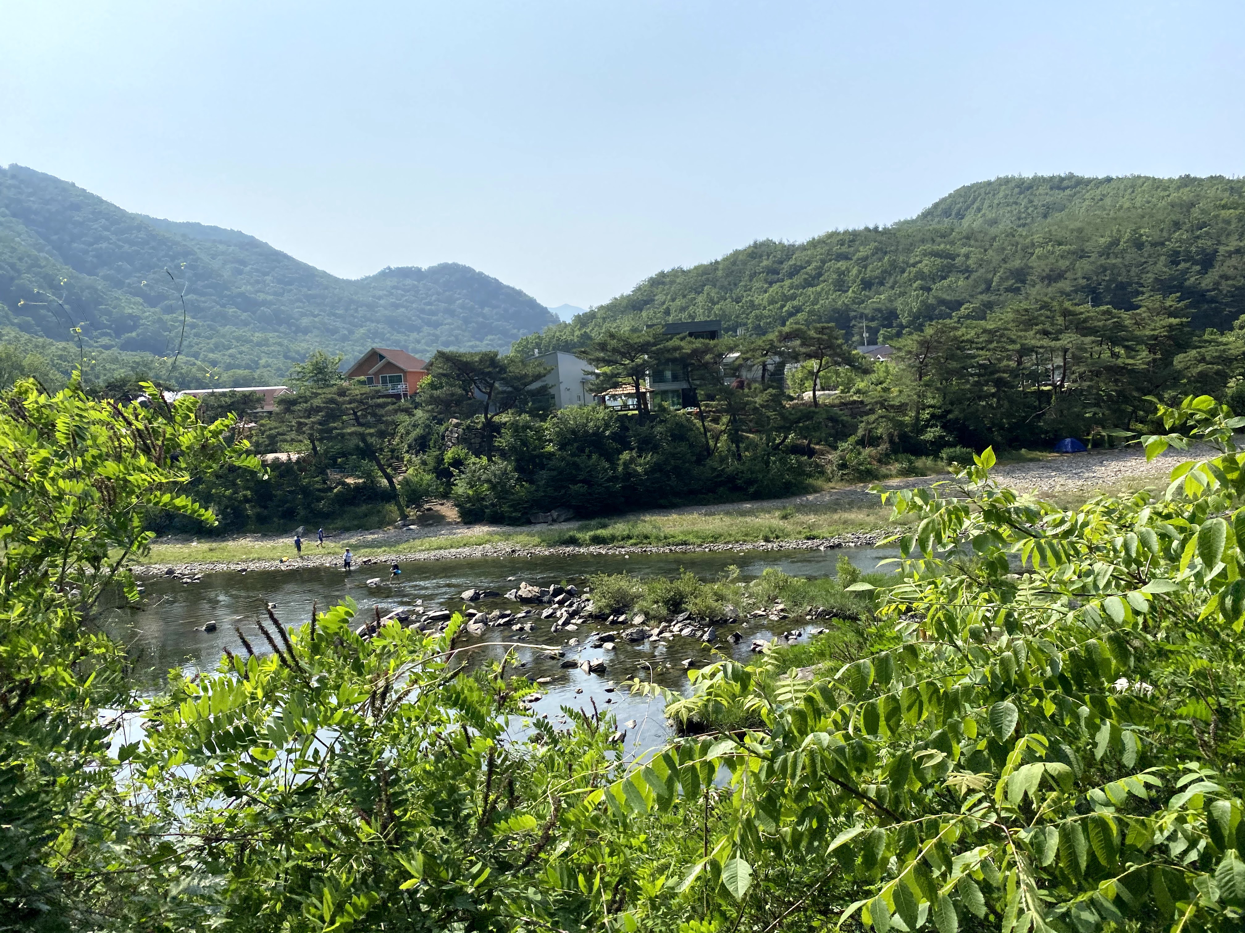 강가 나무그늘 밑에는 텐트를 치고 물놀이를 하는 가족들도 보였다.