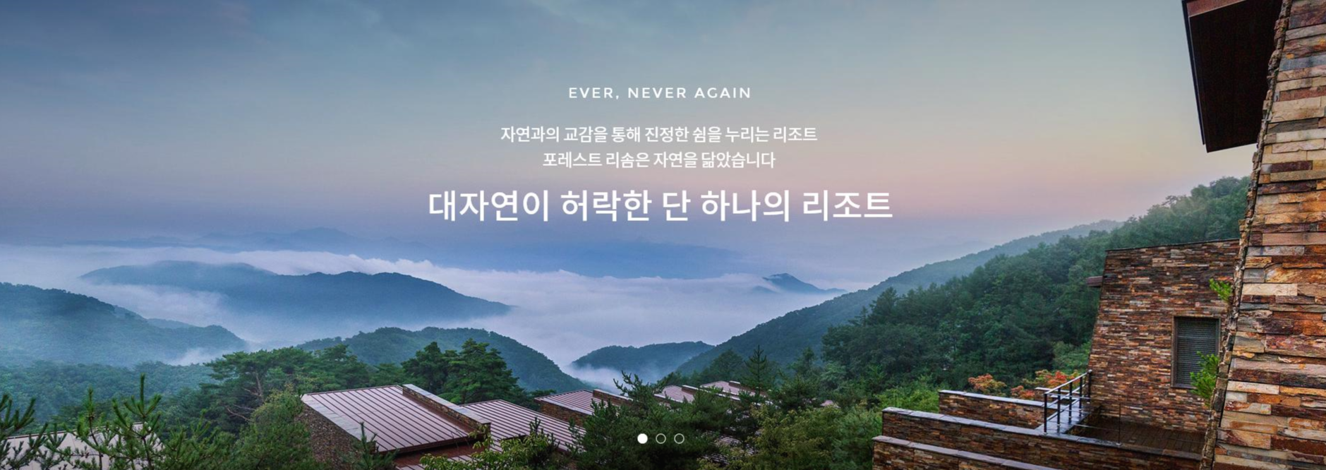 울창한 원시림의 아름다운 사계를 즐길 수 있는 친환경 리조트다. 자연지형과 식생을 그대로 보존하고 친환경 자재를 사용해 있는 그대로의 자연을 만끽할 수 있으며, 리조트 내 자동차 운전이 금지돼 느릿느릿하게 ‘산콕 힐링’을 할 수 있다. 맑은 공기를 마시며 소풍을 즐길 수 있는 테라스 피크닉과 에너지 회복을 돕는 힐링스파 아쿠아 프로그램 등이 상시 진행된다.
