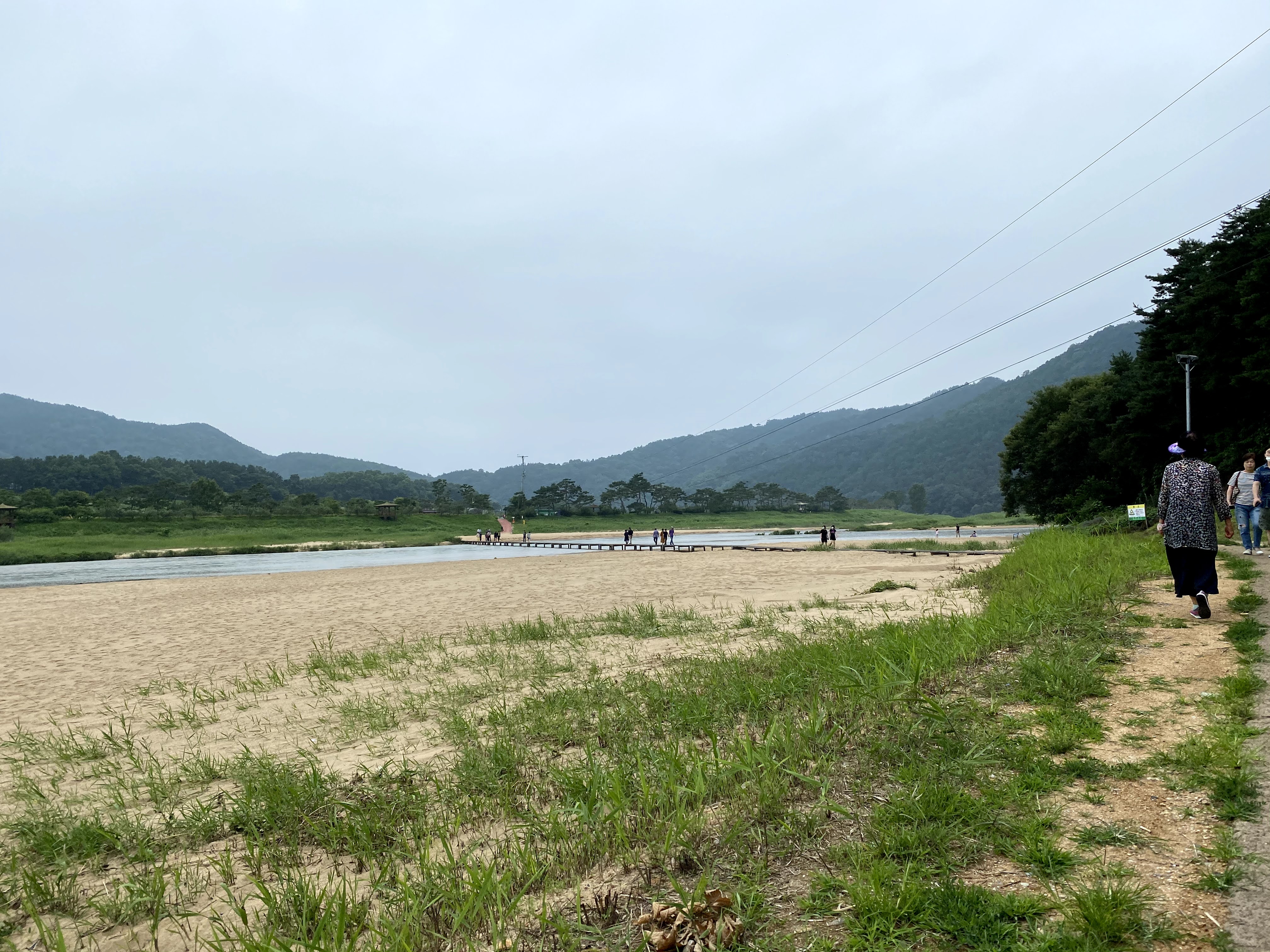 본래 깊지 않고 물이 맑아 강바닥에 보이는데 며칠 전 내린 비로 강물이 많이 불어있다.