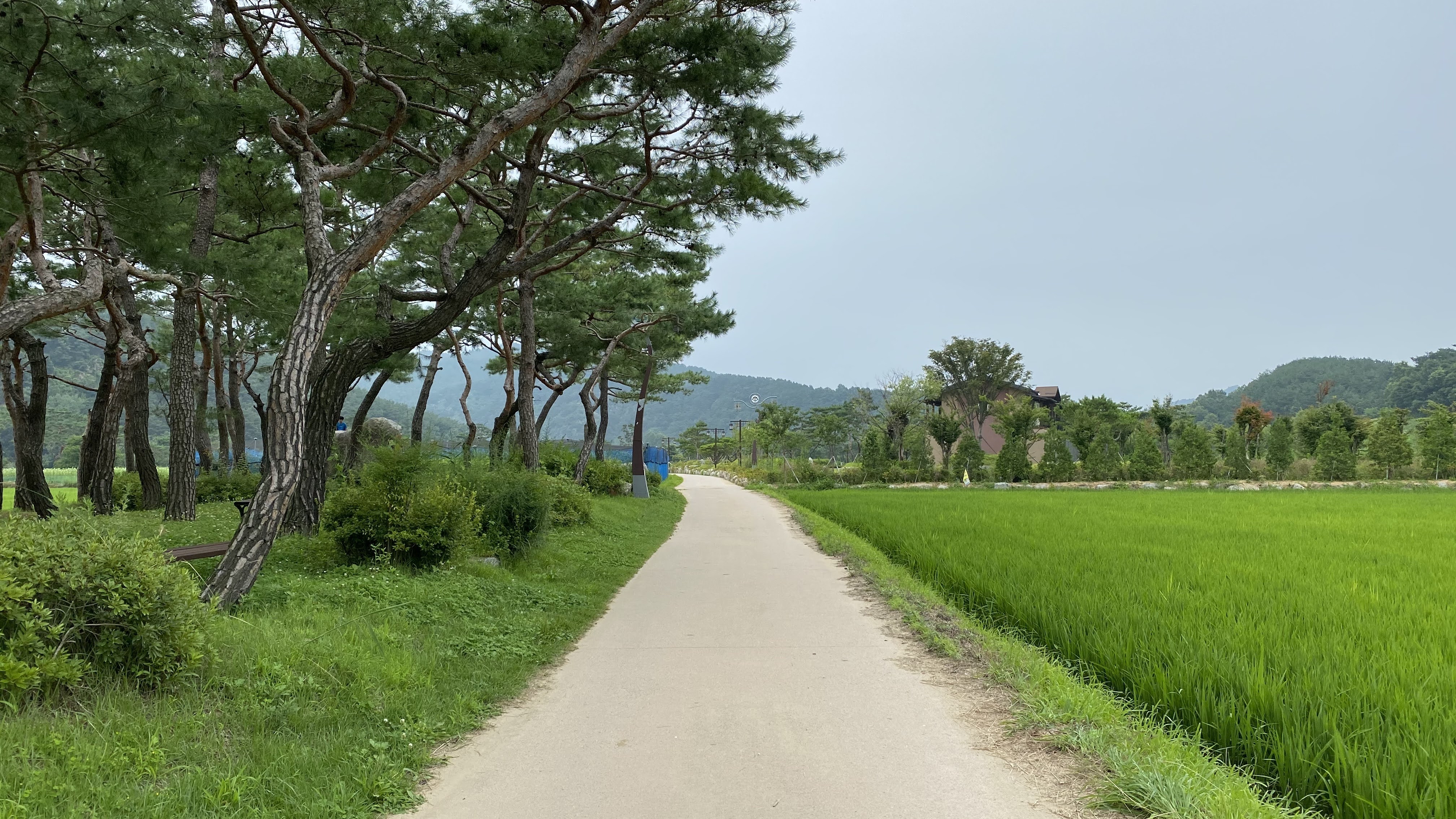 멋진 소나무와 산책로, 비온 뒤 며칠 지나지 않아 풀이 자라긴 했지만 쓰레기도 안 보이고... 마을이 잘 관리되는 것 같았다.