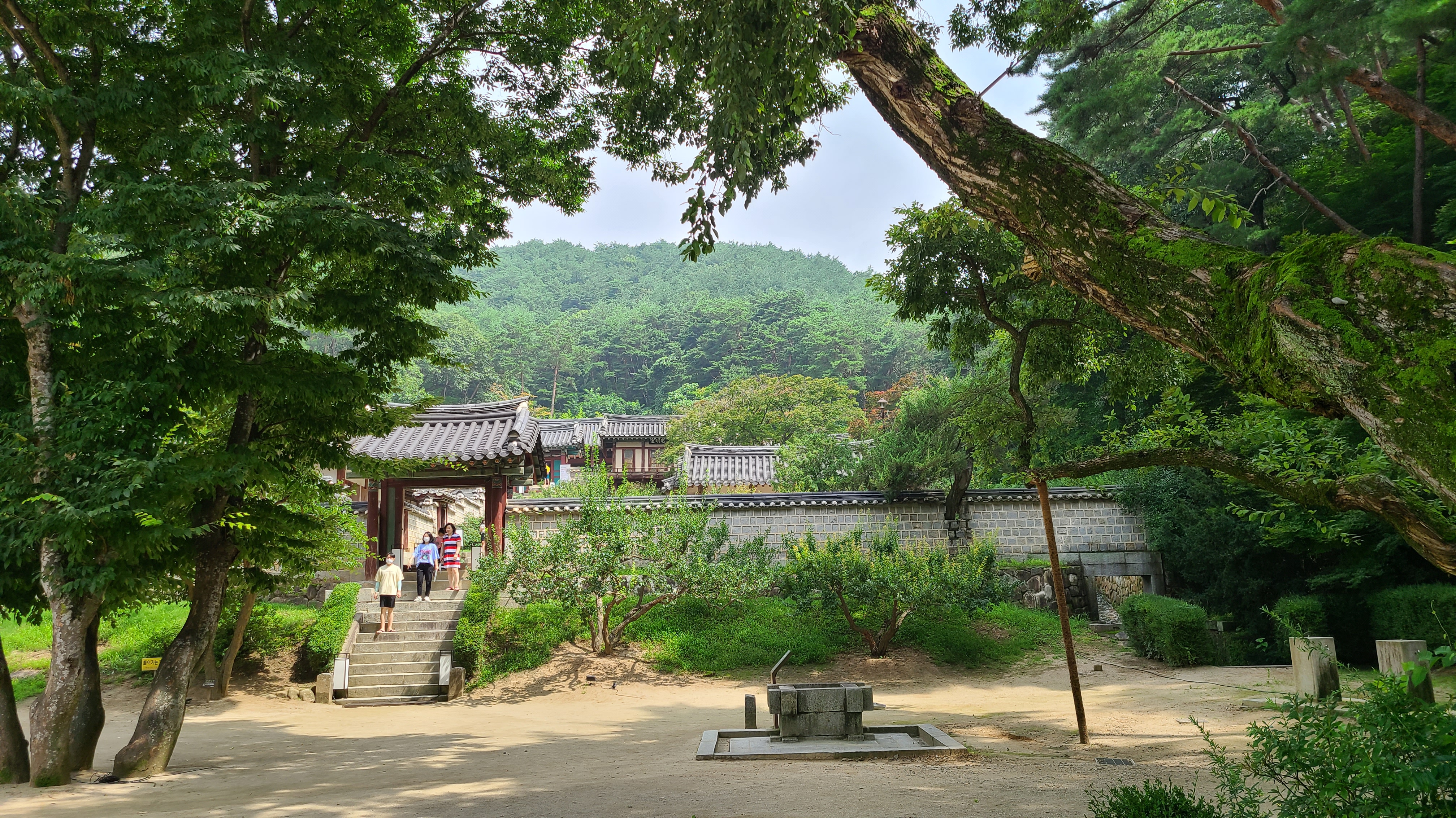 마당의 우물 뒤로 보이는 것이 정문이다.