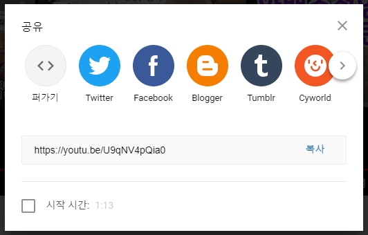 공유할 유튜브 영상 주소 끝에 ?rel=0 만 추가해 주면 된다.