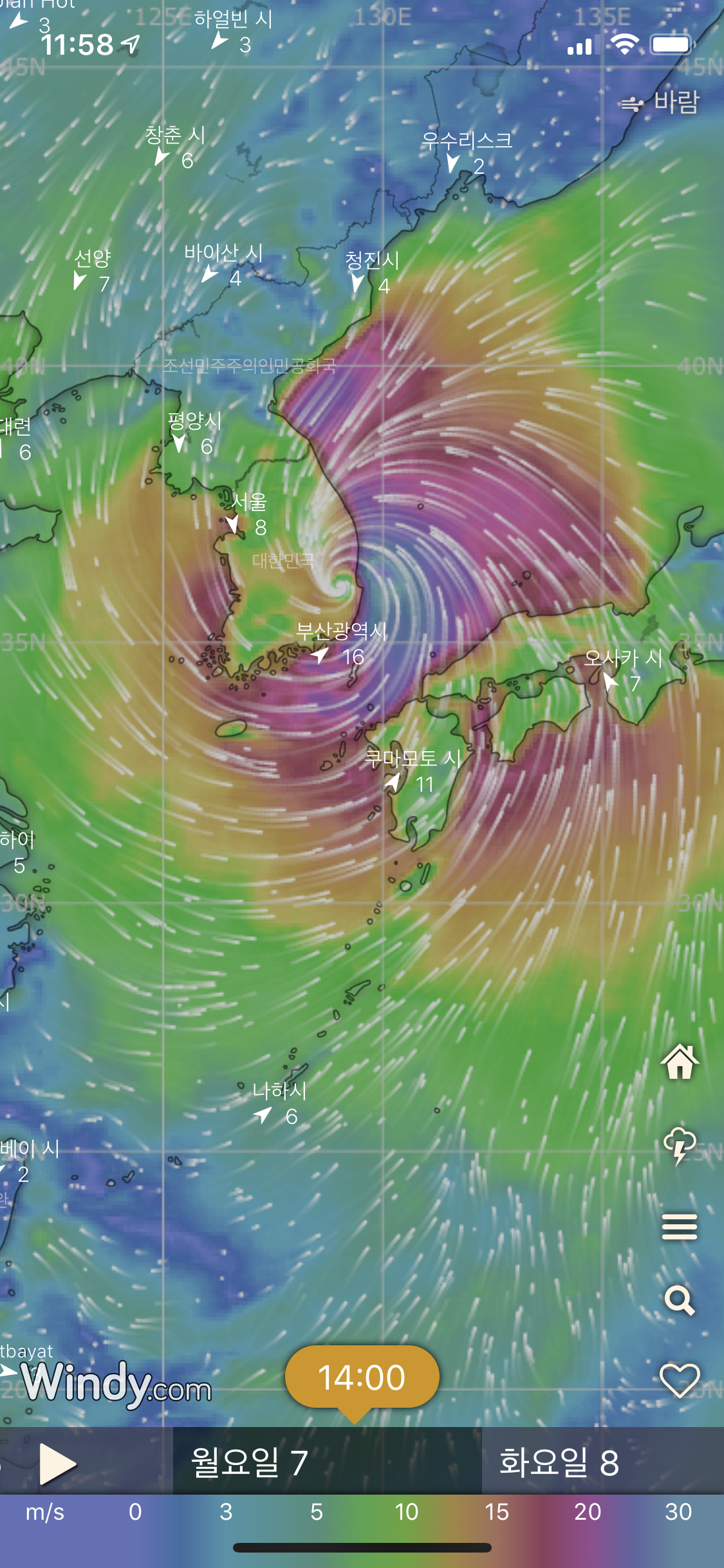 윈디는 남해안으로 상륙한 하이선이 이번에도 부산과 영남지방을 통과해