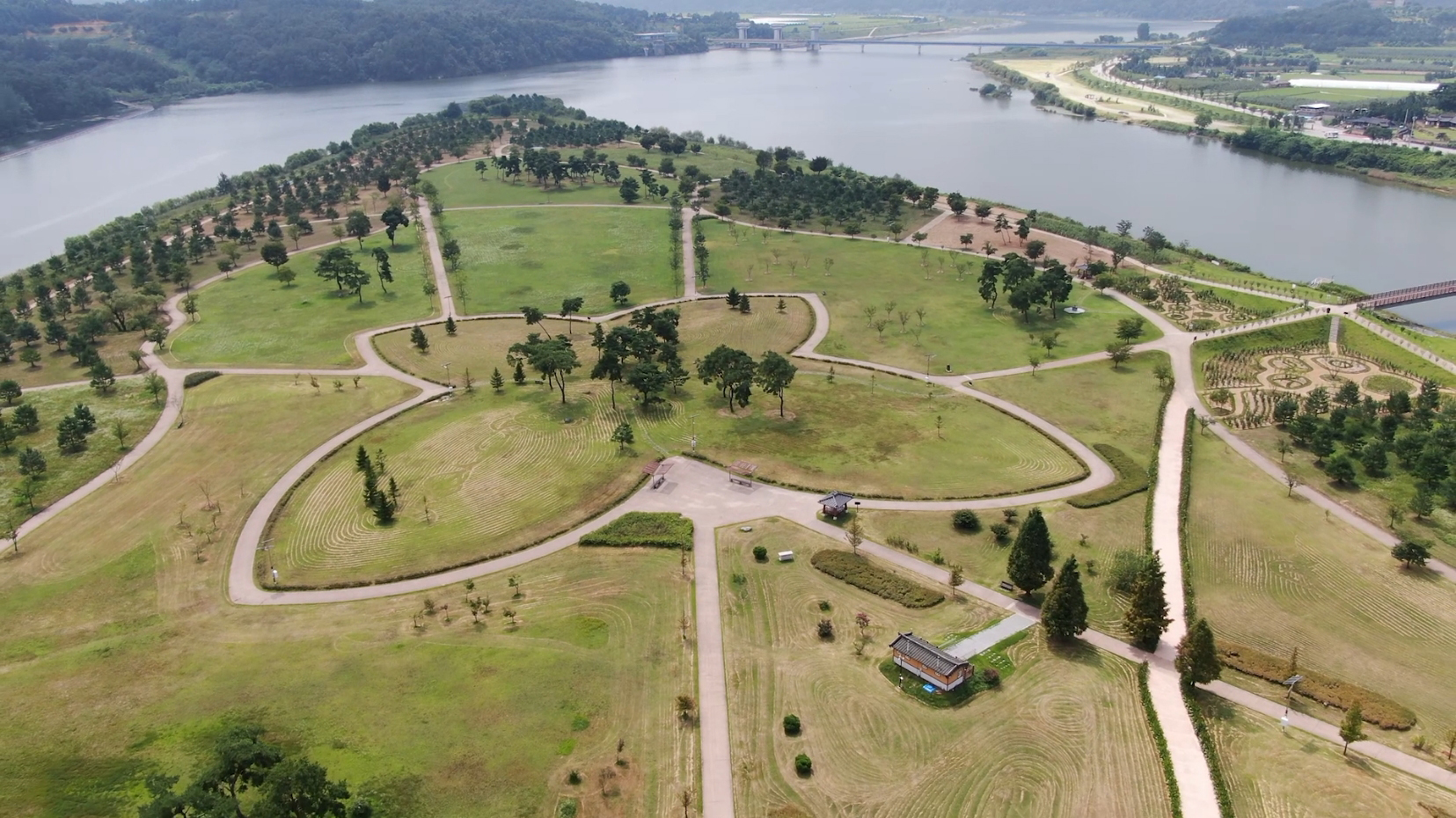 경천섬 주차장에서 다리를 건너면 만날 수 있는 경천섬공원.