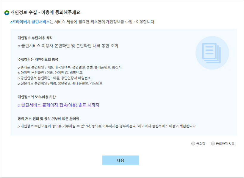 e프라이버시 클린서비스 홈페이지에 접속합니다.