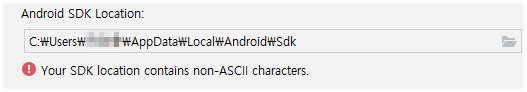 경로에 한글명 또는 공백이 있을 경우이니 경로를 변경하도록 한다.