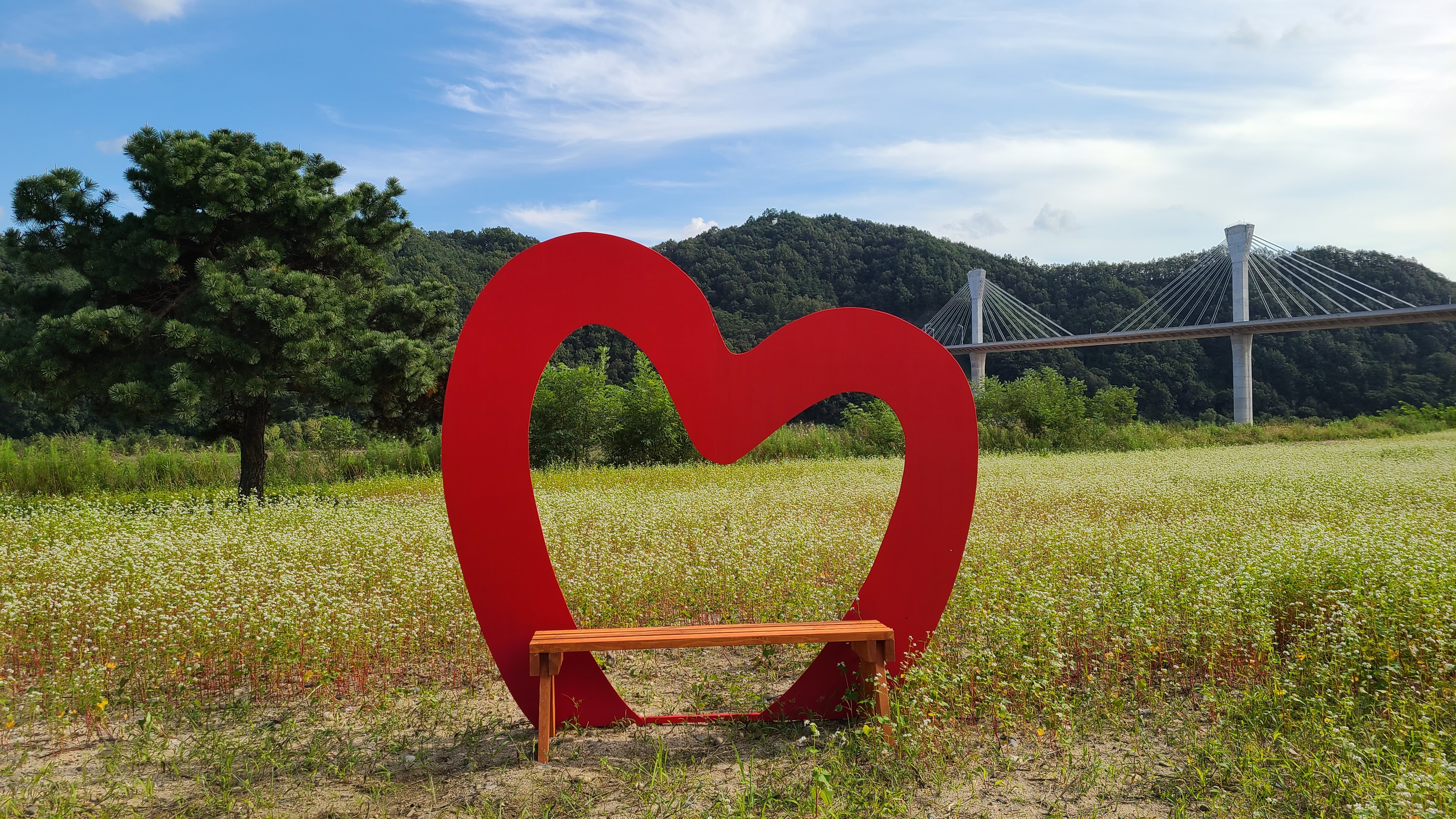빨간 하트 뒤로 보이는 다리가 서안동대교.