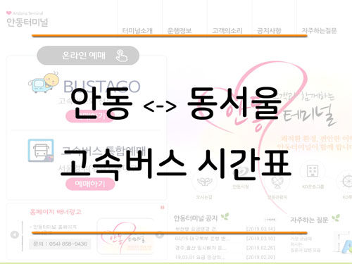 안동 동서울 고속버스 시간표, 요금, 소요시간 정리