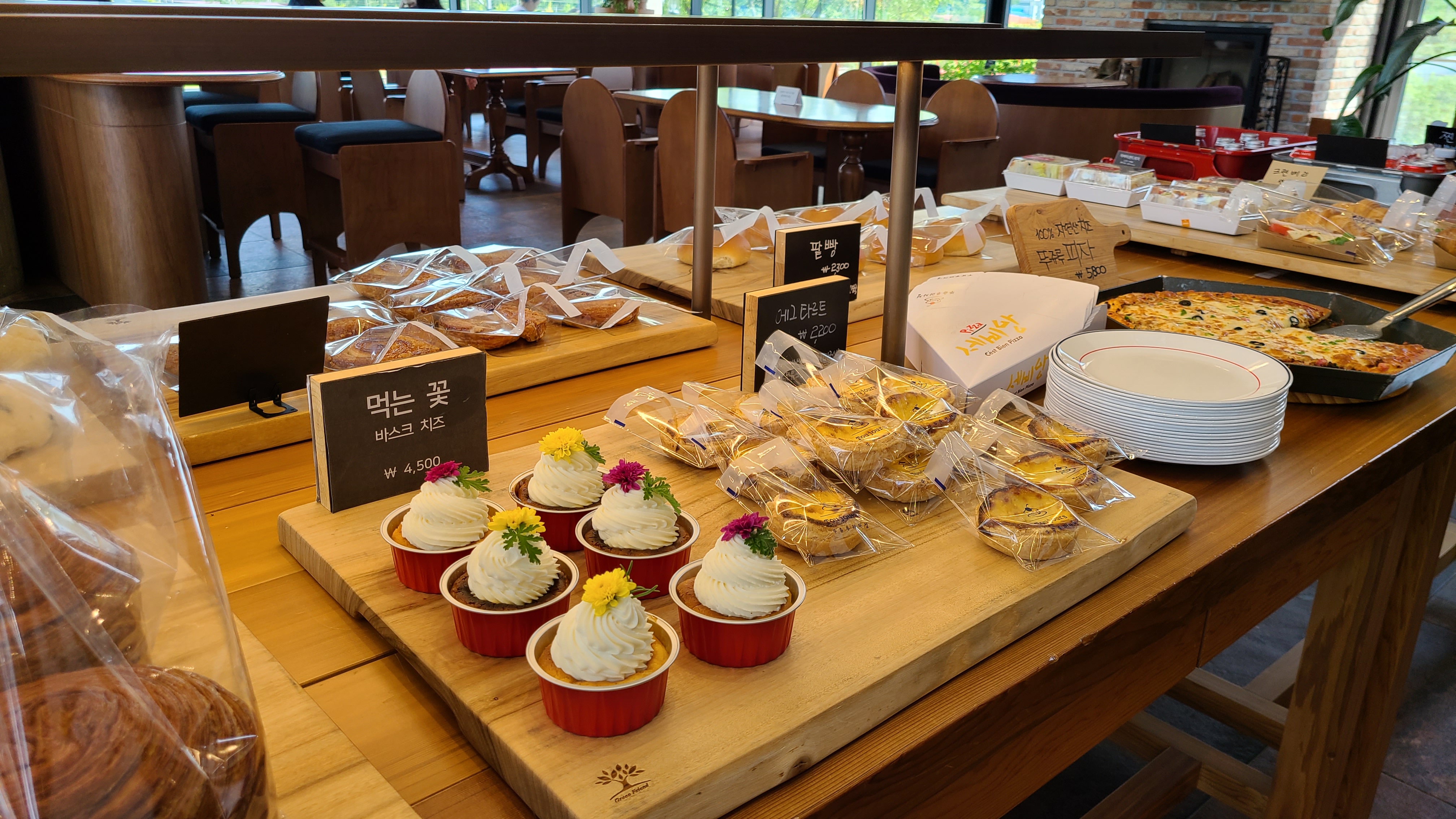 빵, 디저트류, 커피 음료를 판매하는 마을 카페이다.