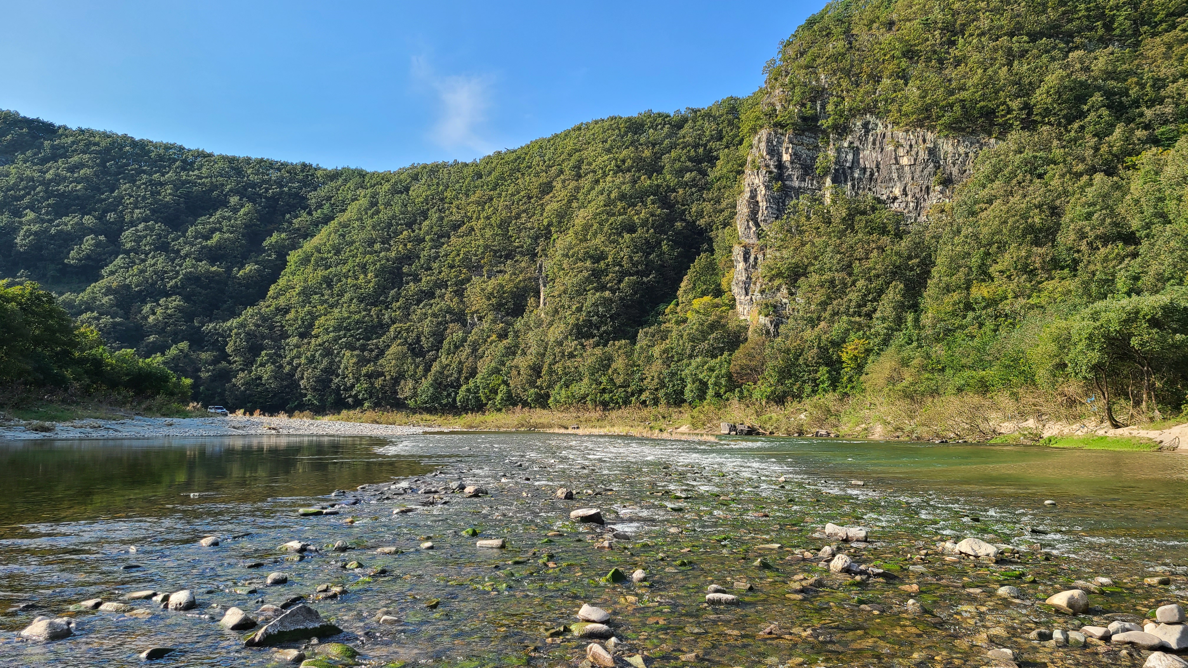메밀꽃과 굽이 흐르는강과 절벽으로 절경이 멋진곳이다.
